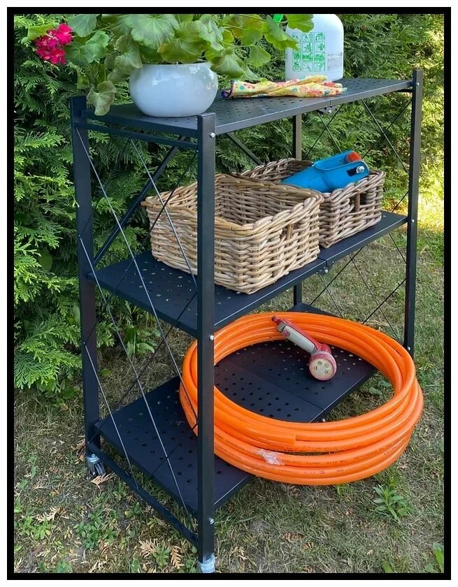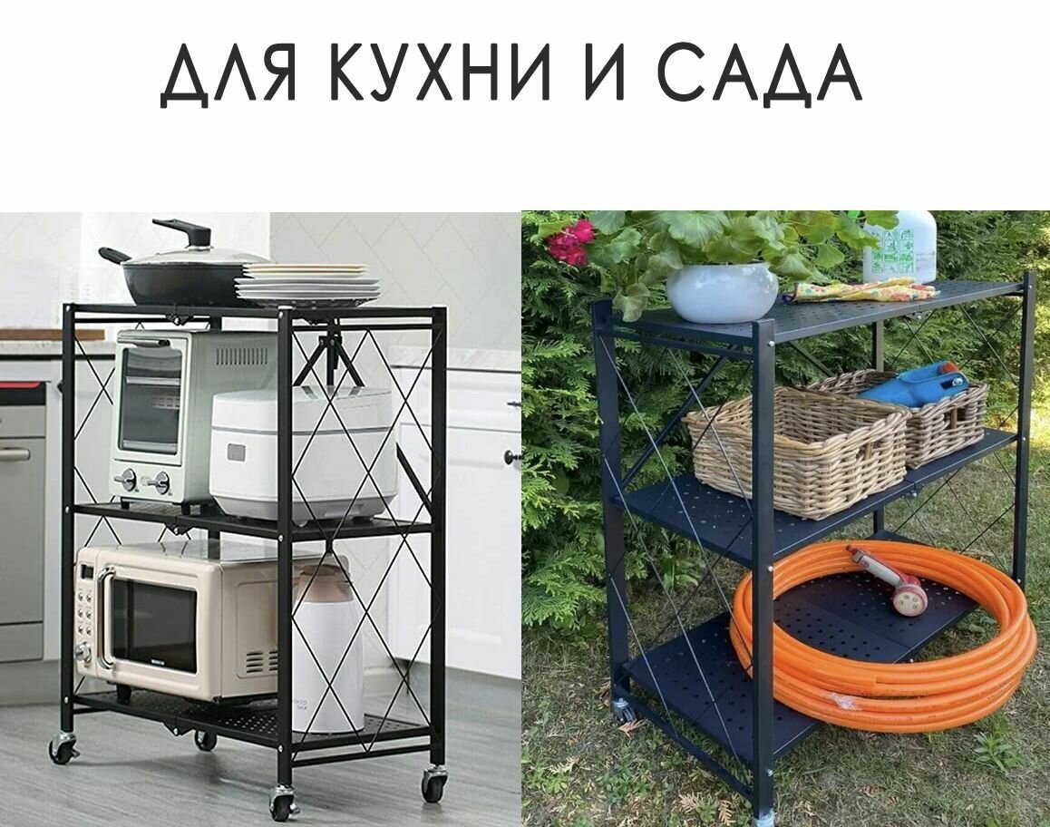 СохранитьСкладной металлический стеллаж / этажерка на колесиках 73х40х88.5 см, 3 яруса, черный. интересное: