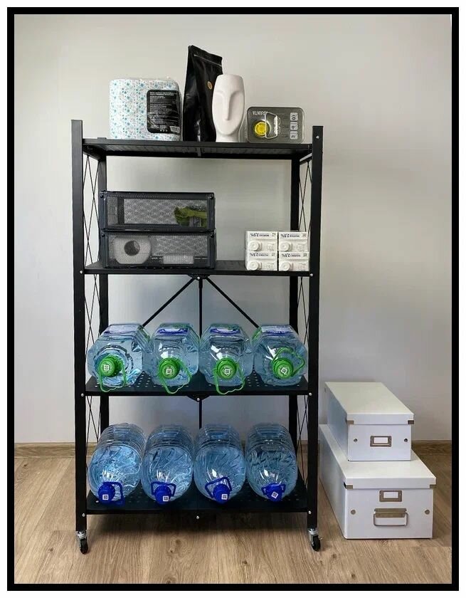 Металлический стеллаж складной на колесиках, LettBrin, 73 х 40 х 126.5 см, 4 яруса, черный