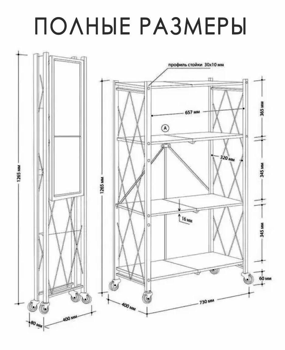 СохранитьМеталлический стеллаж складной на колесиках, LettBrin, 73 х 40 х 126.5 см, 4 яруса, черный интересное: