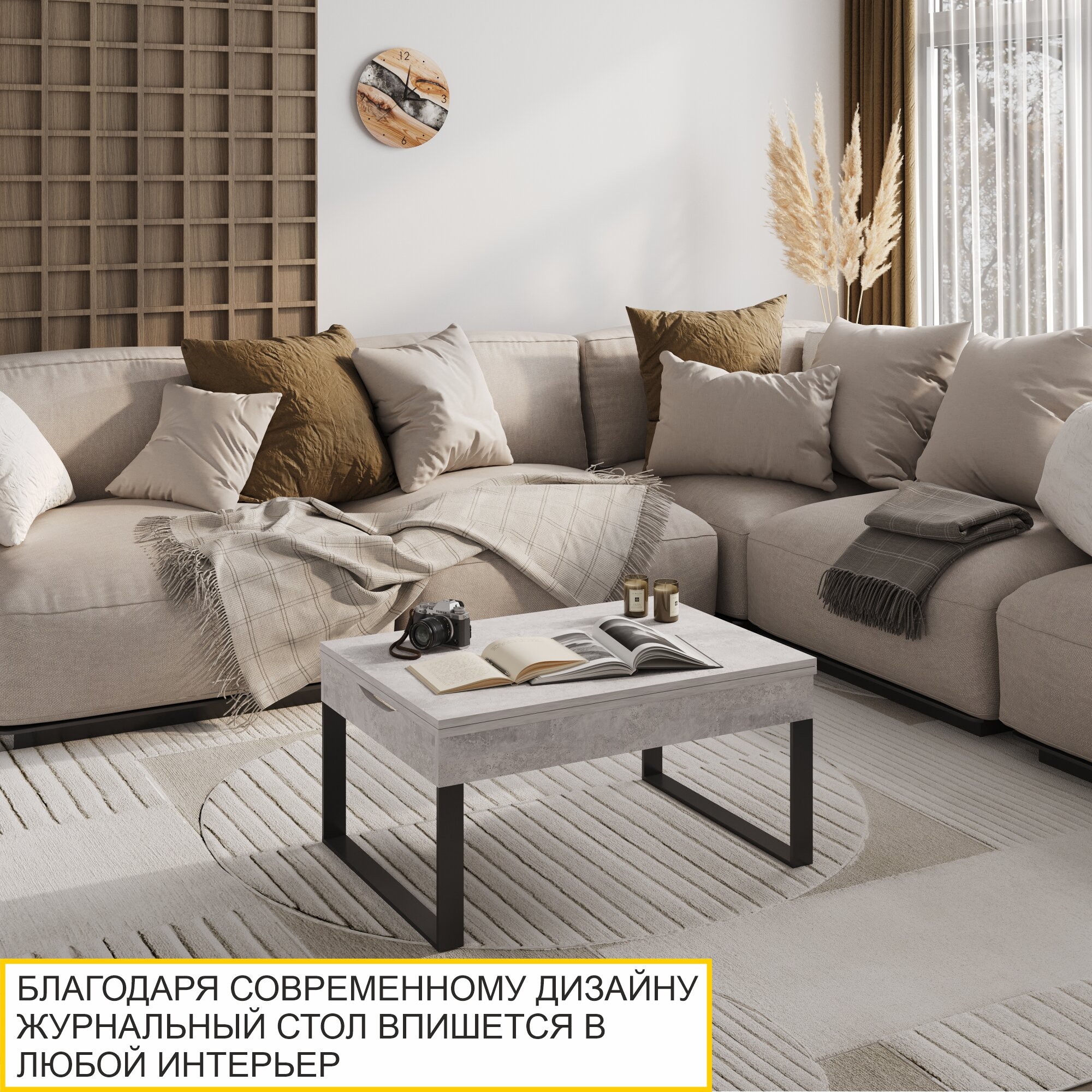 СохранитьЖурнальный стол-трансформер Рим 25 (03) Цемент/Черный, 85х60х43 см интересное: