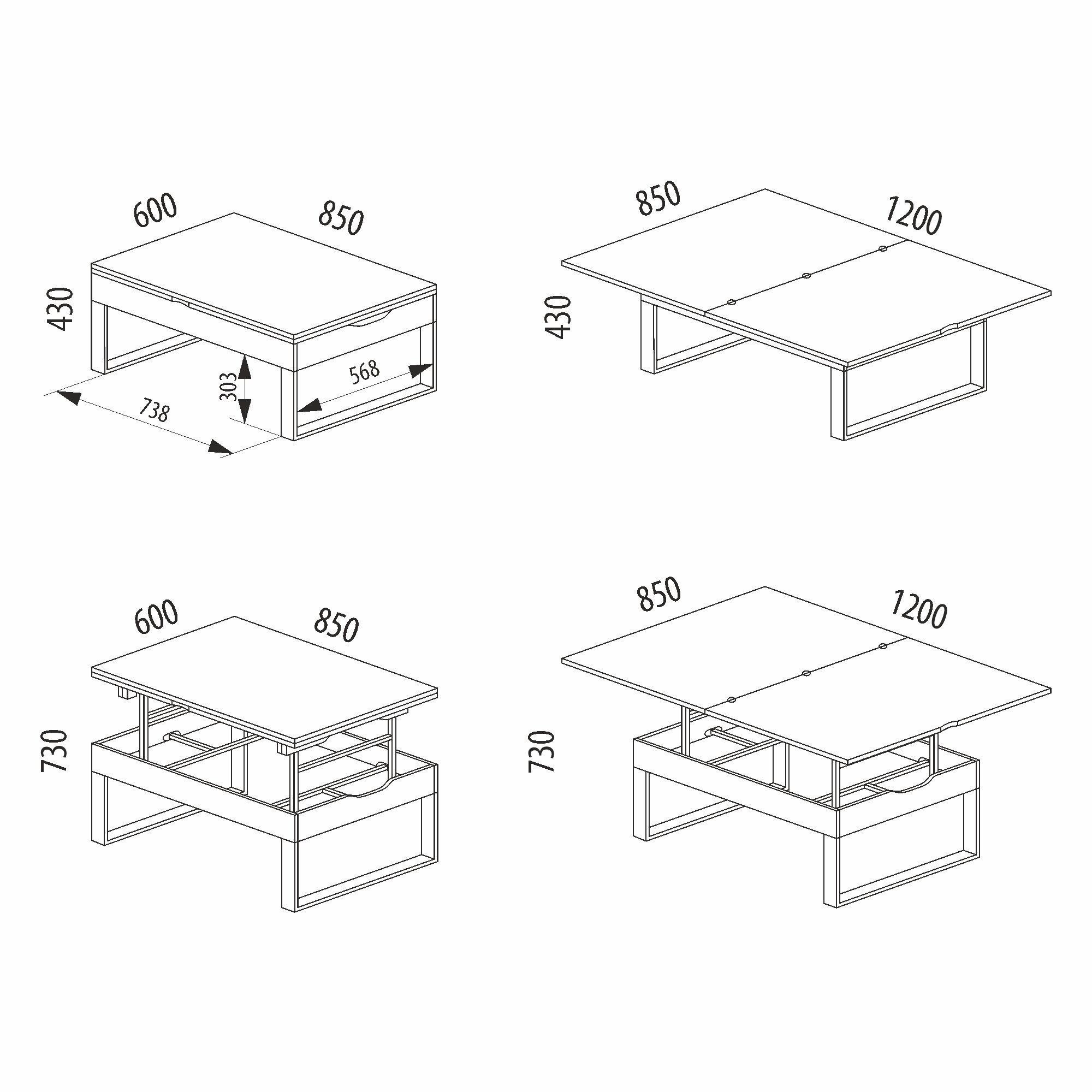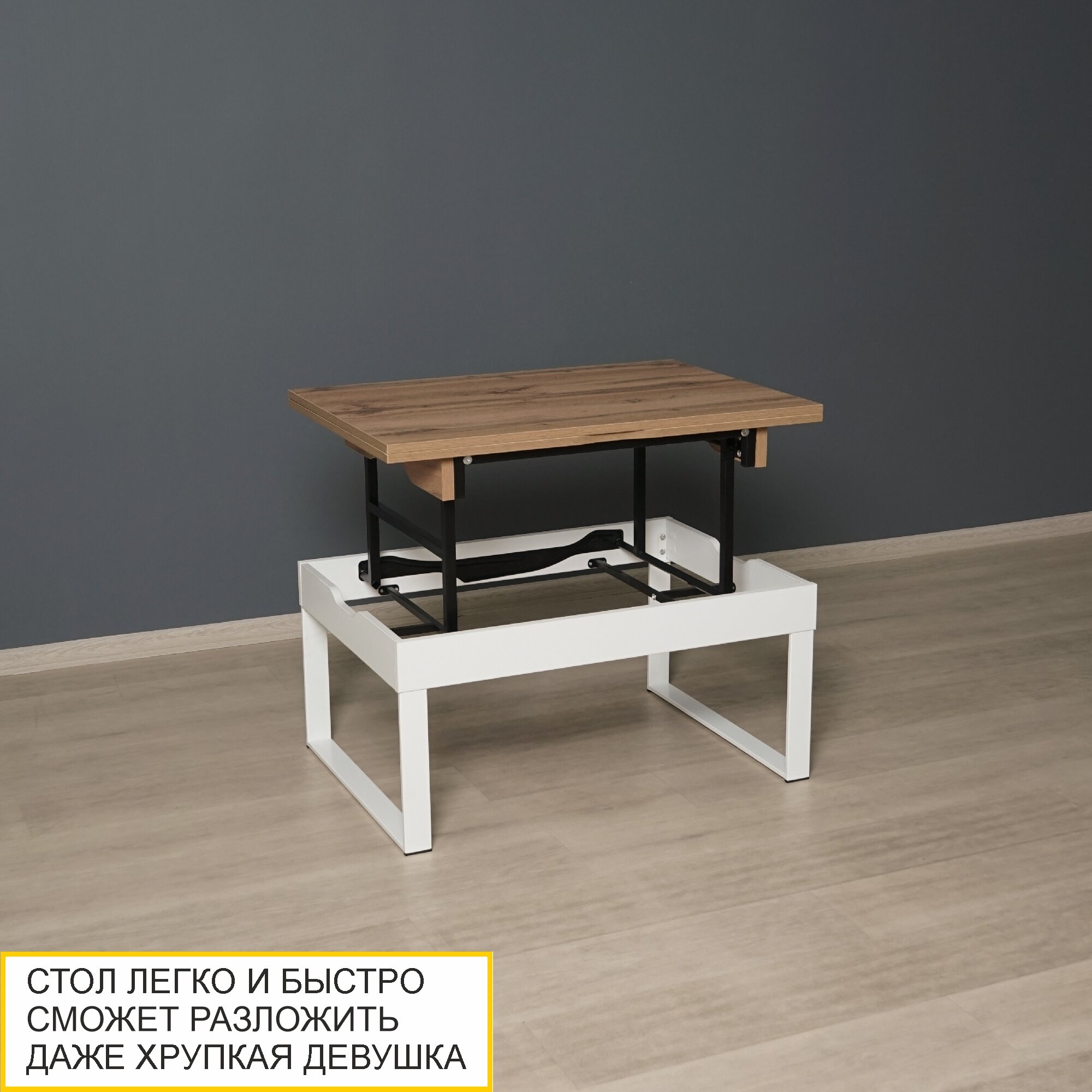 Журнальный стол-трансформер Рим 25 (05) Белый шпон/Черный, 85х60х43 см
