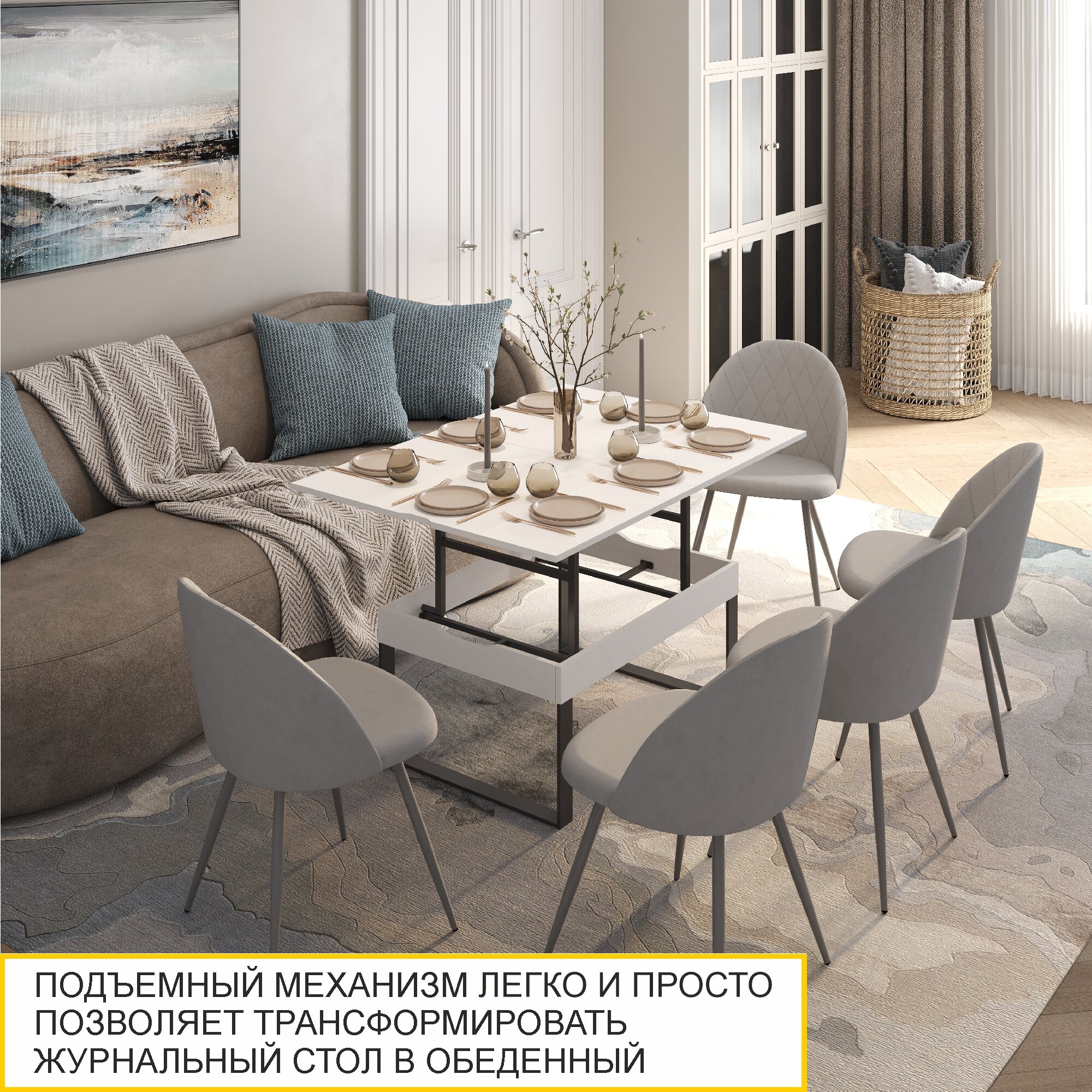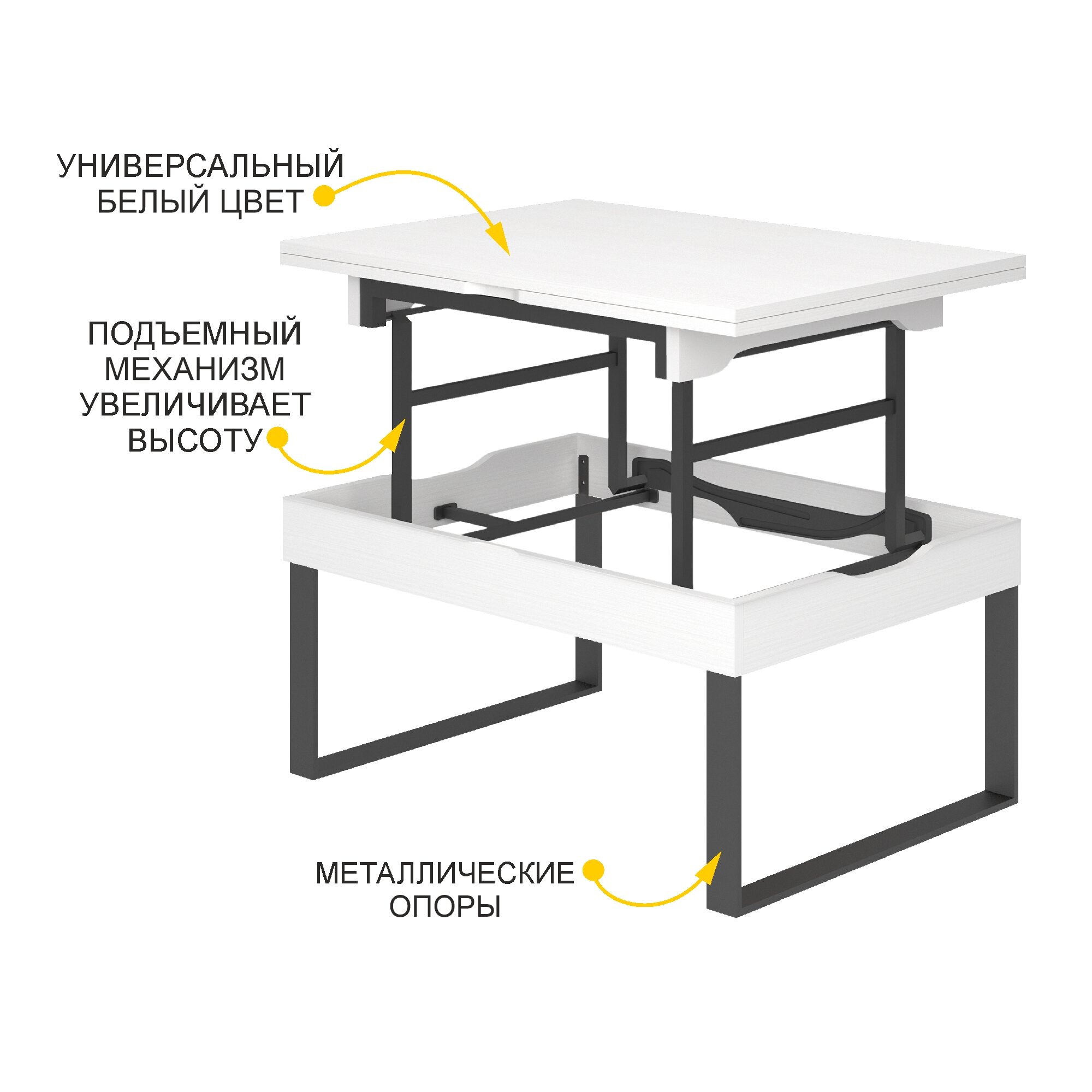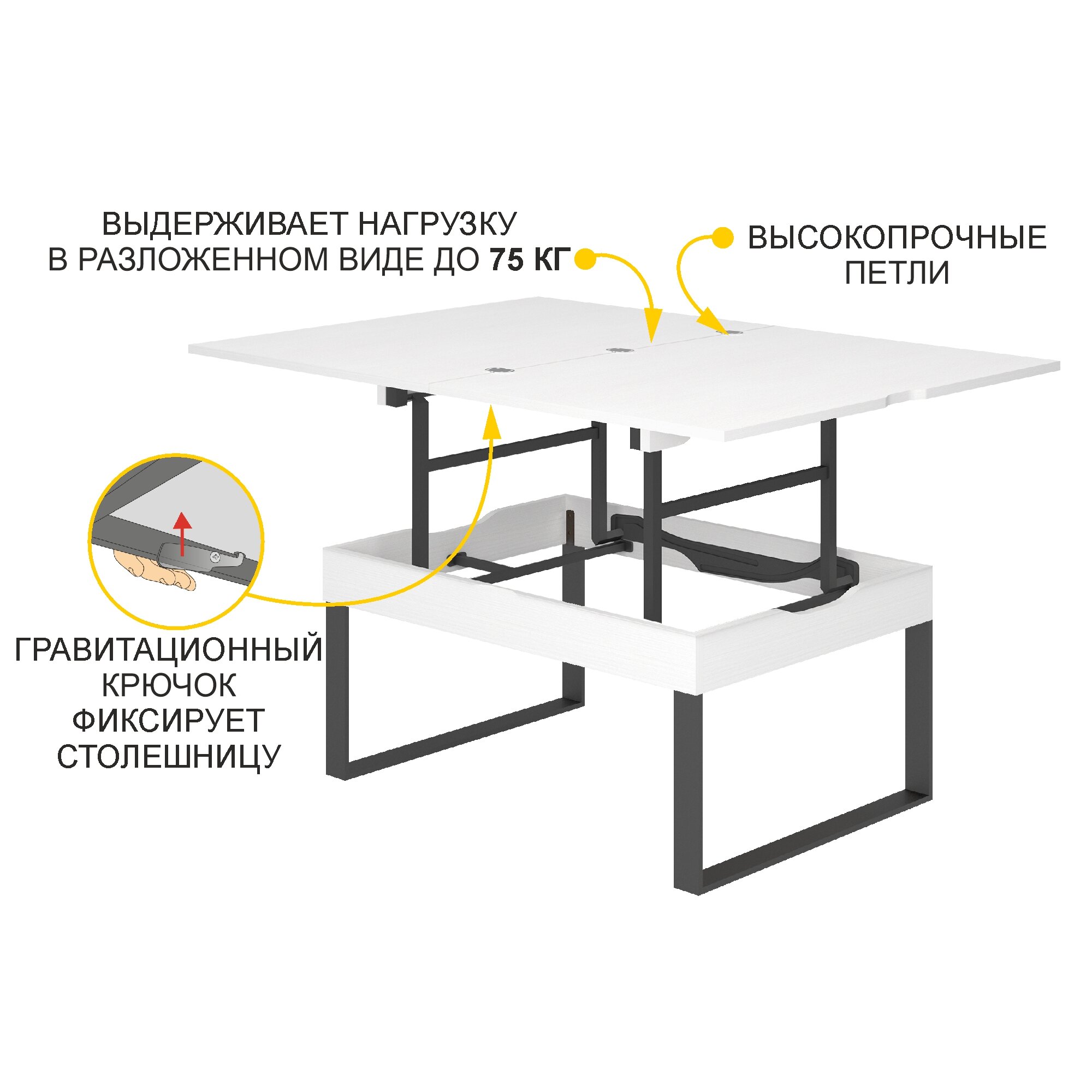 Купить Журнальный стол-трансформер Рим 25 (05) Белый шпон/Черный, 85х60х43 см