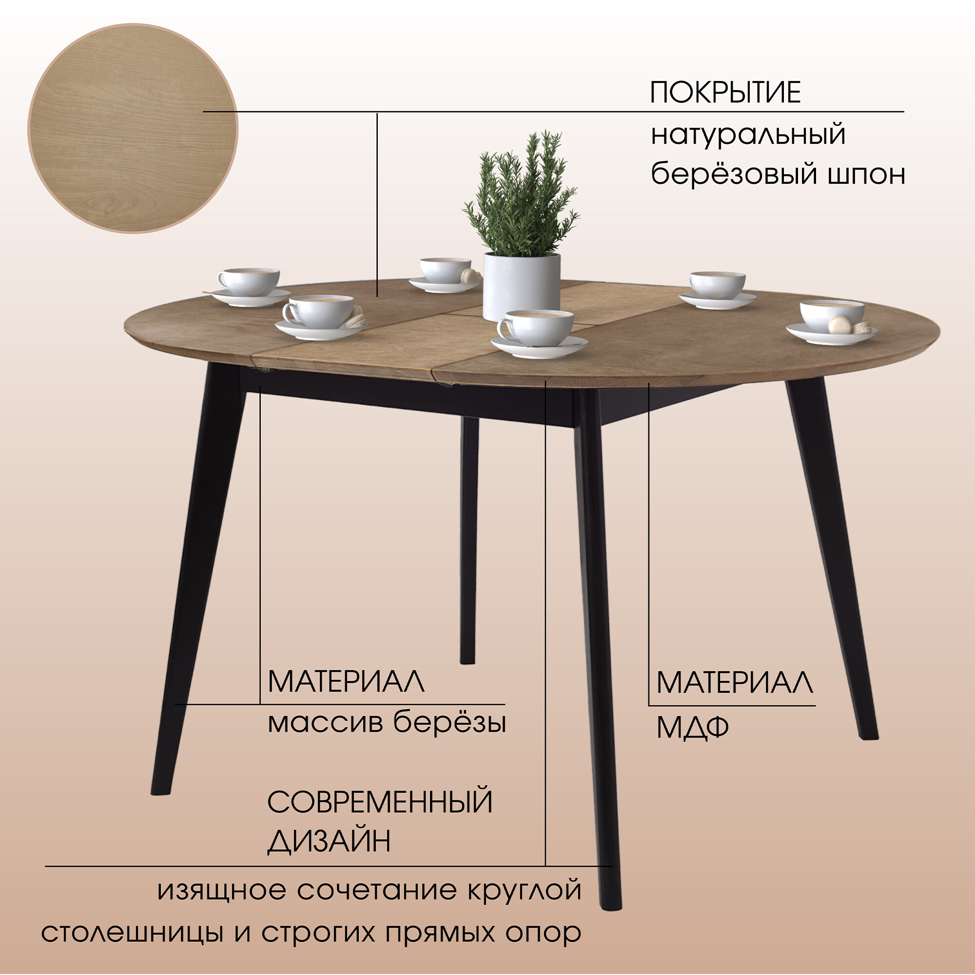 | Дополнительная информация | Коричневая столешница, выполнена из МДФ, покрытие – шпон березы. Опоры стола и подстолье – изготовлены из массива берёзы. |