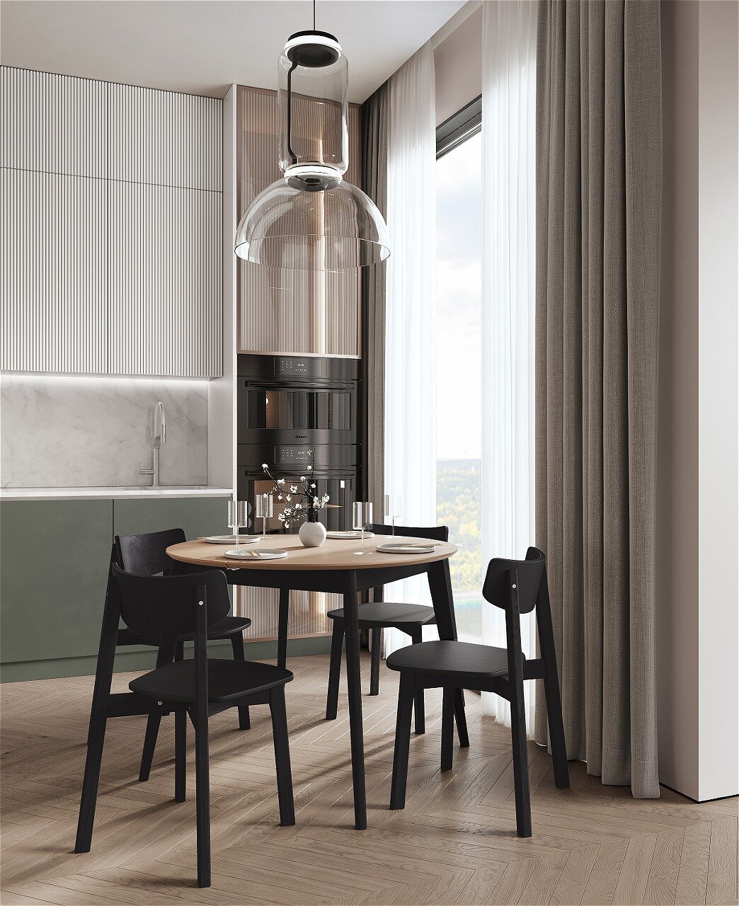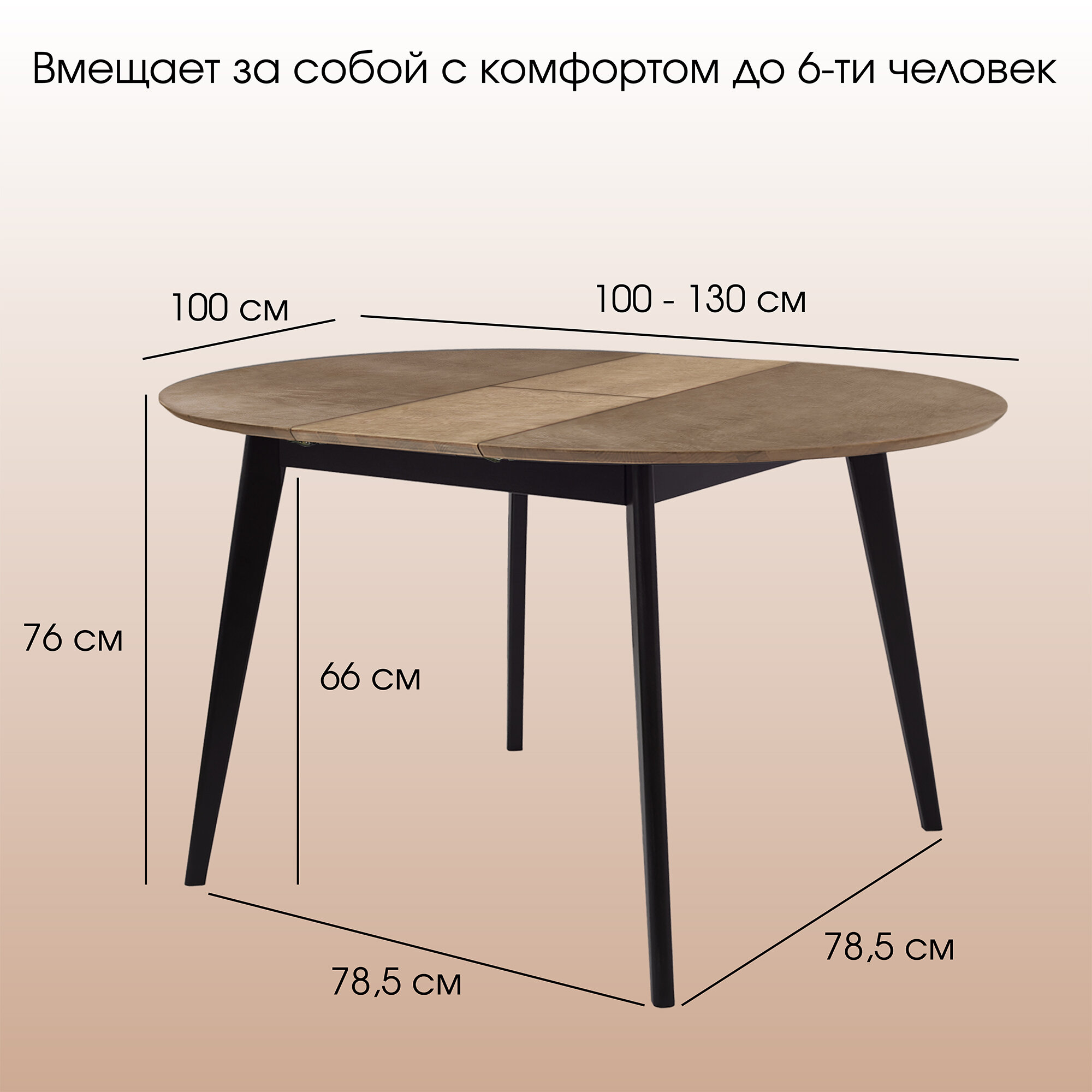 Стол кухонный Орион+ classic (100-130) см круглый, раздвижной, деревянный - Черная эмаль