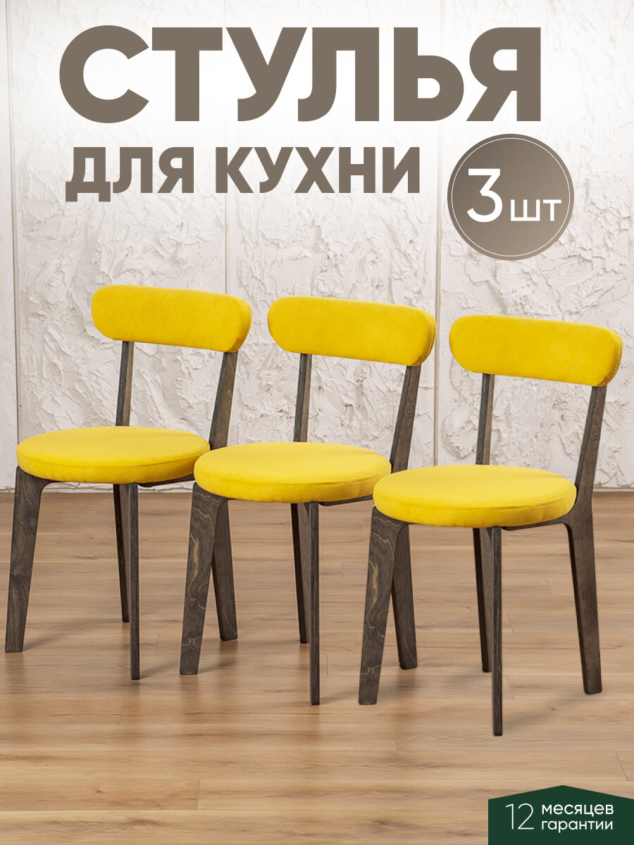 СохранитьСтулья для кухни 3 шт мягкие со спинкой для дома темный дуб + желтый интересное: