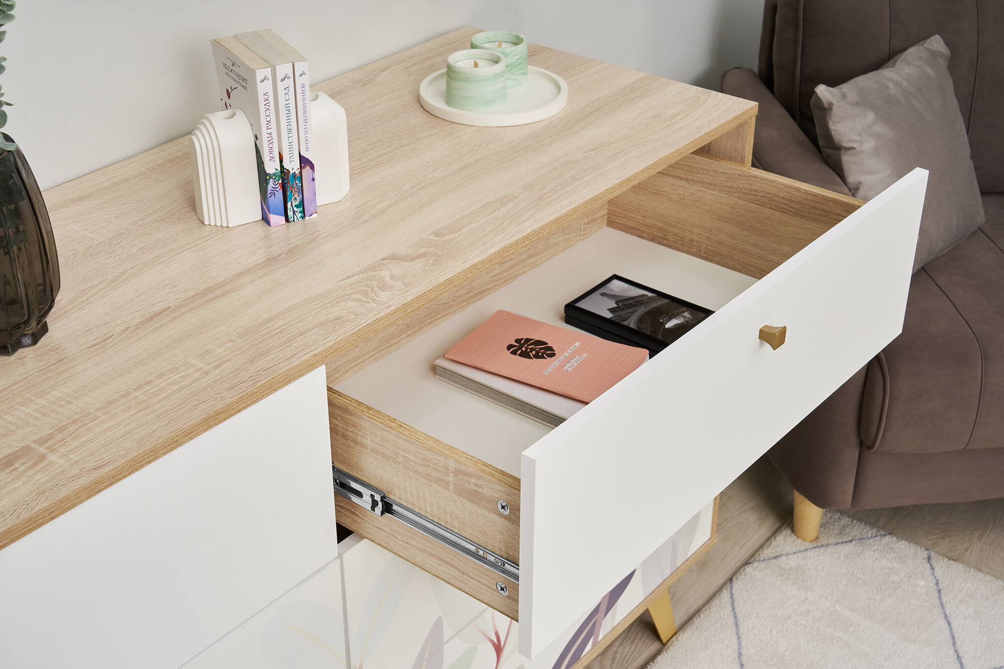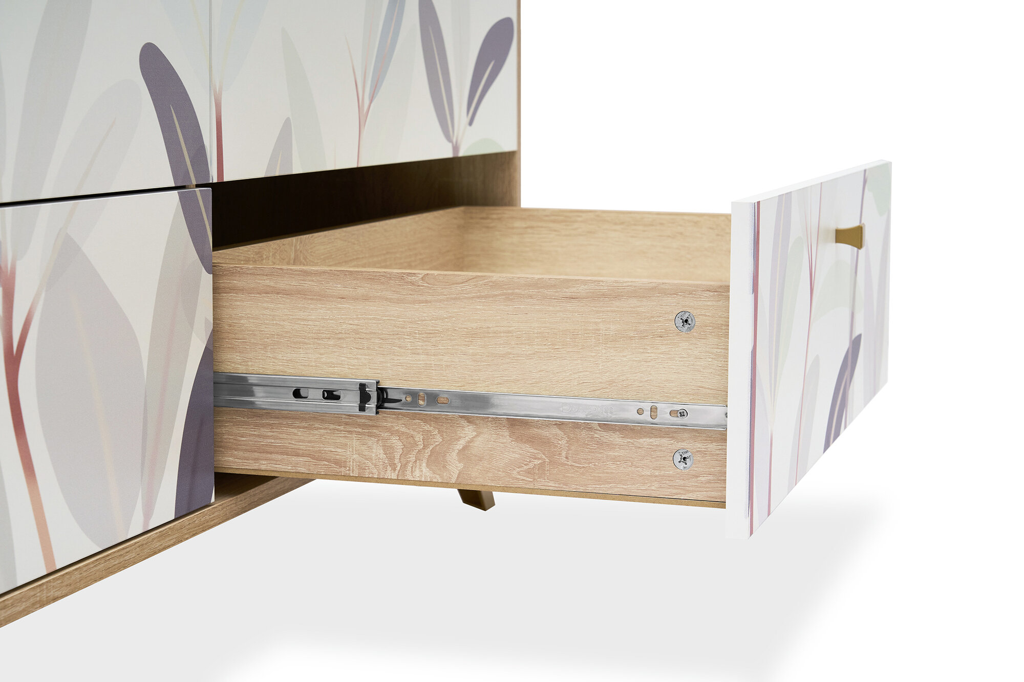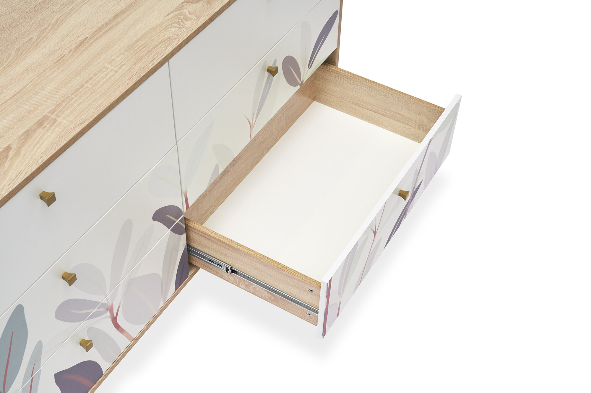 Купить Комод Нонтон Адажио дуб сонома / белый с принтом цветы 160x50x85 см