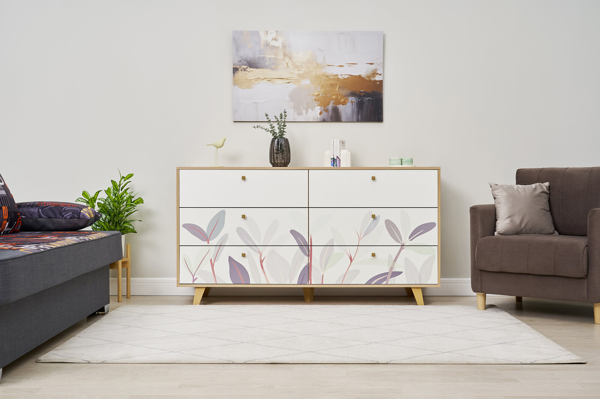 Комод Нонтон Адажио дуб сонома / белый с принтом цветы 160x50x85 см интересное: