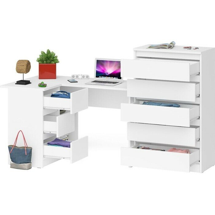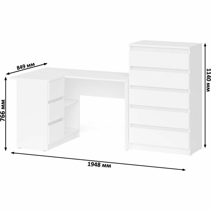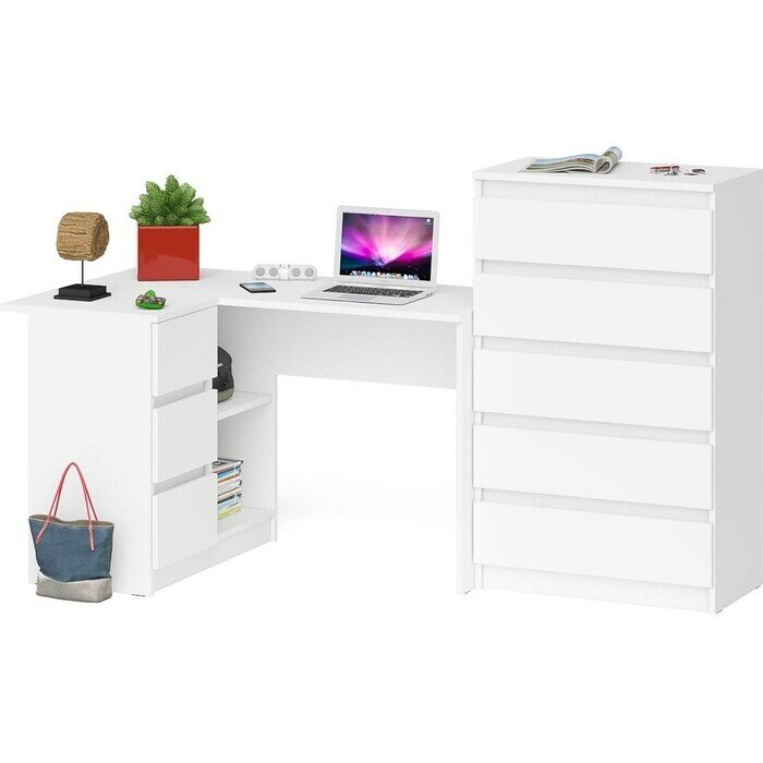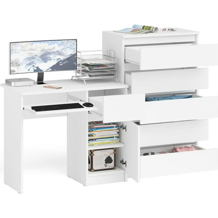 Купить Комплект СВК Мори Стол компьютерный МС-1 правый + Комод МК700.5, цвет белый