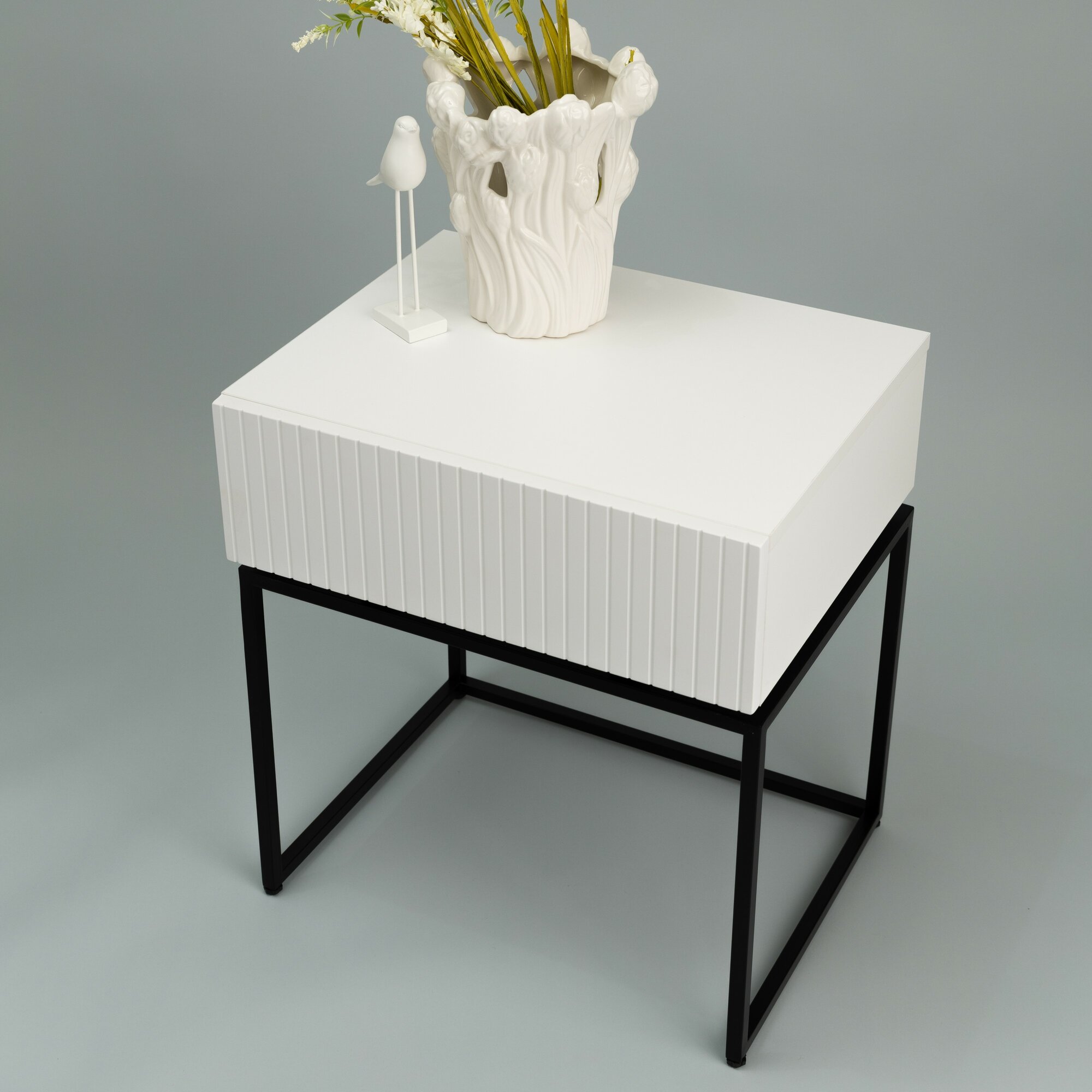 Купить Тумба прикроватная белая с ящиком, тумбочка напольная на черных ножках, мебель для спальни Life 50х40х56 см
