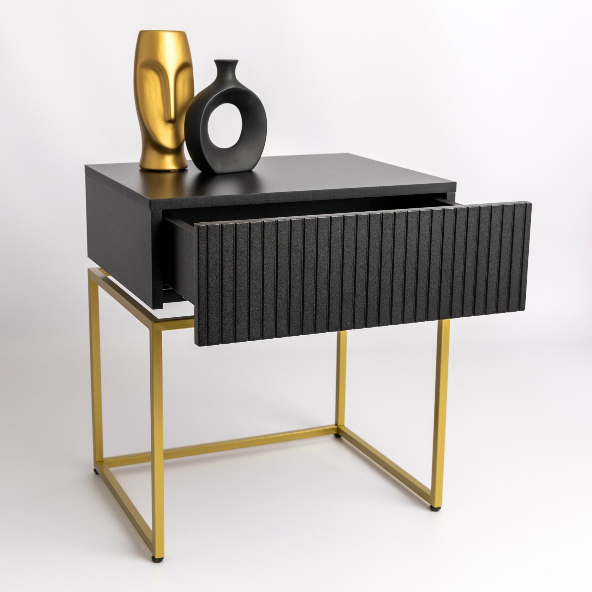 Тумба прикроватная с ящиком, тумбочка черная на золотистых ножках, мебель для спальни Life 50х40х56 см
