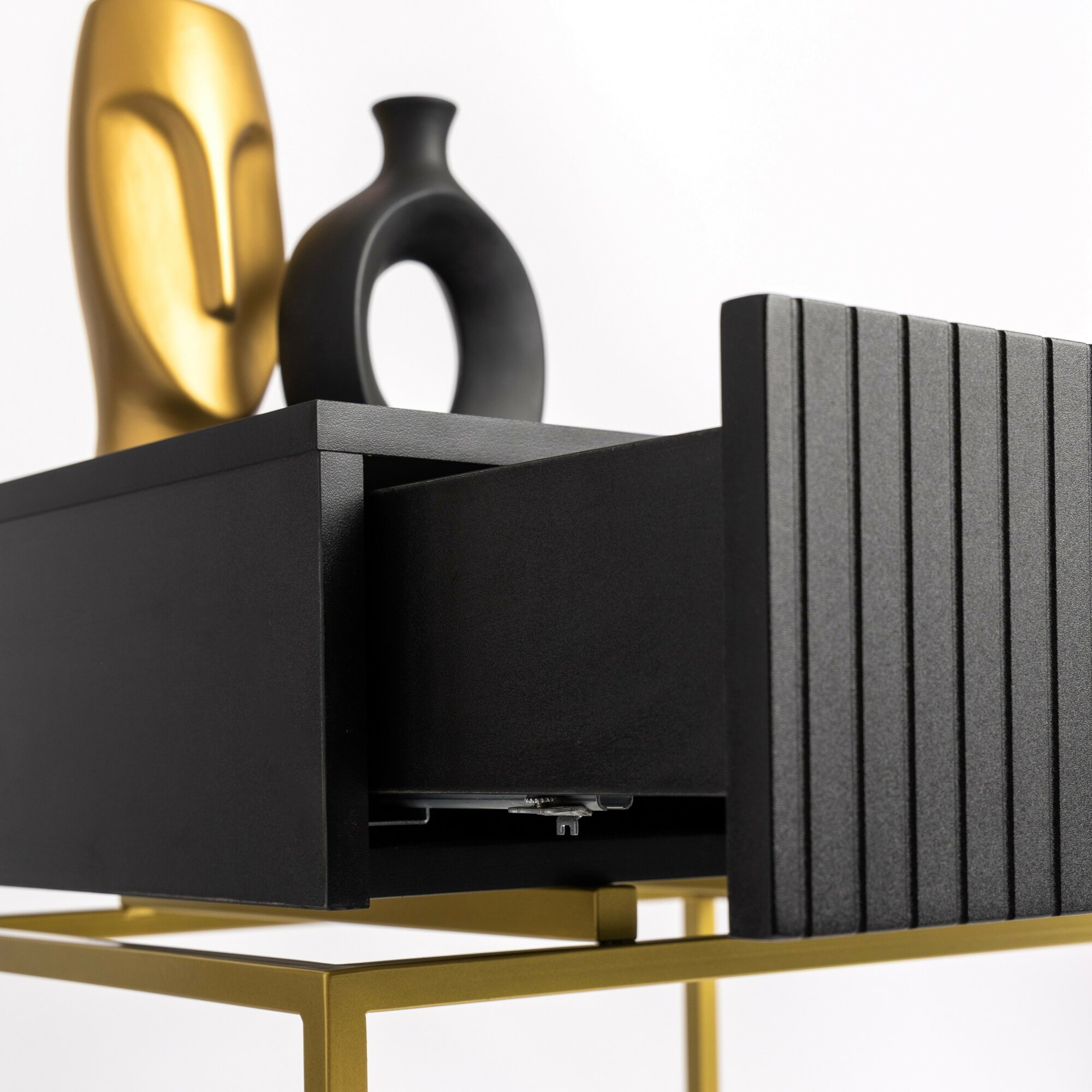 Тумба прикроватная черная с ящиком в спальню, тумбочка в прихожую Life на золотых ножках 50х40х56 см