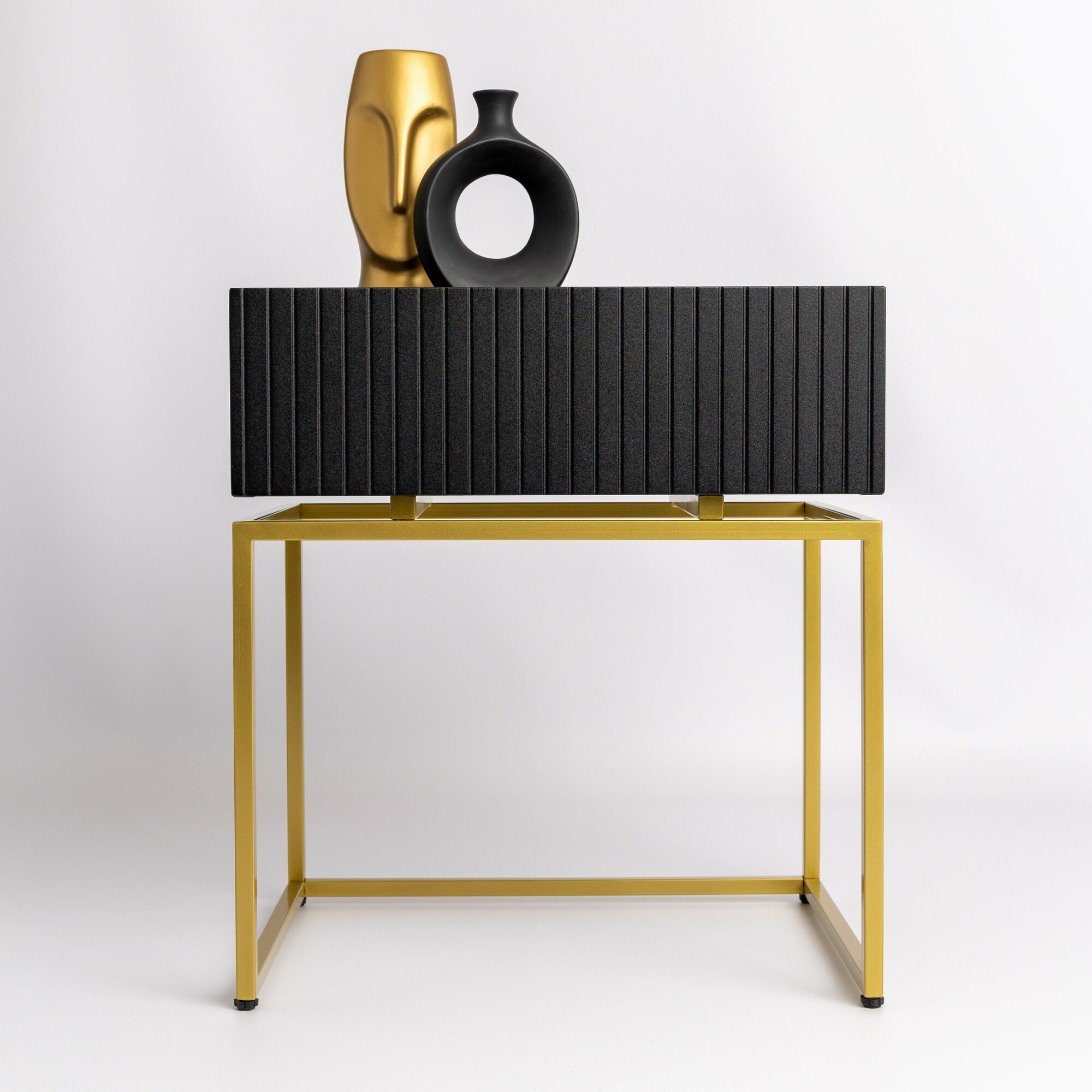 Купить Тумба прикроватная черная с ящиком, тумбочка напольная на золотых ножках, мебель для спальни Life 50х40х56 см