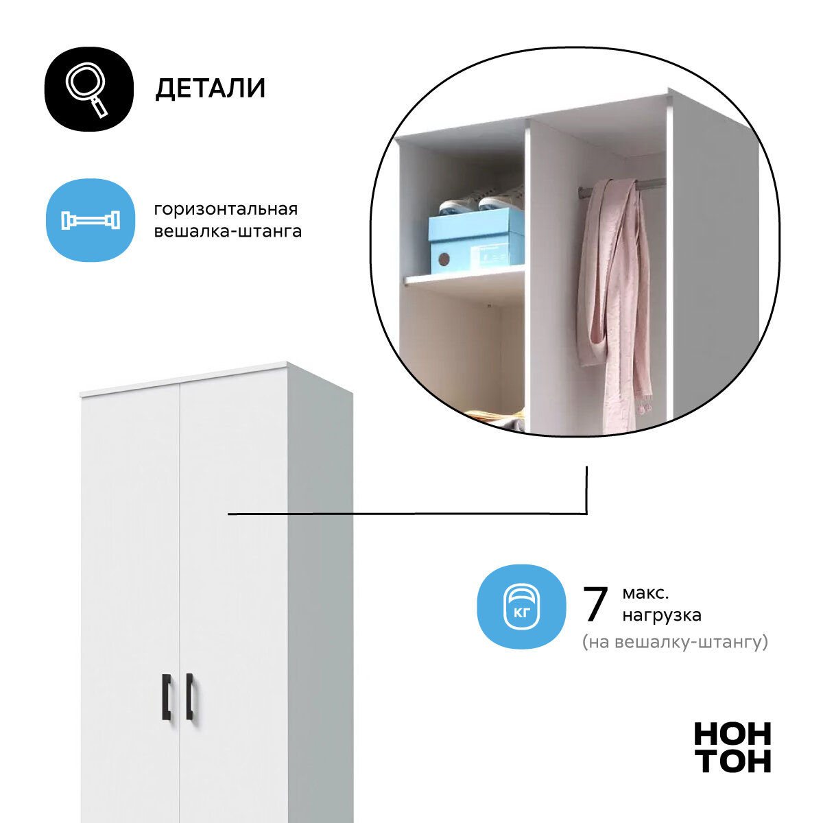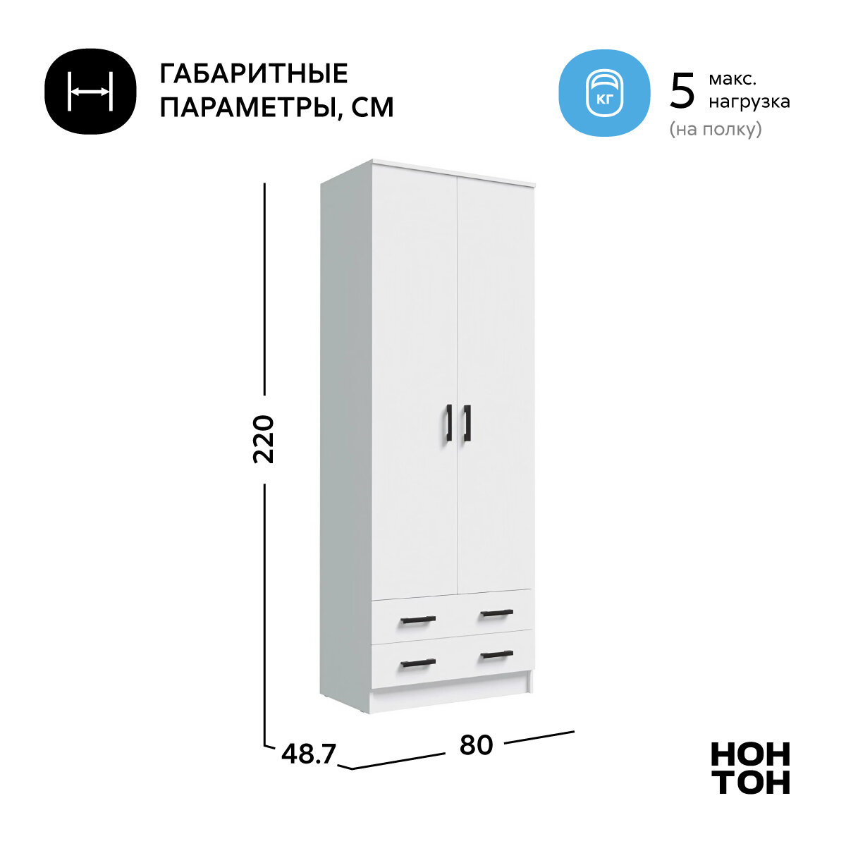 Шкаф для одежды Нонтон Дуэт, белый гладкий 80 см