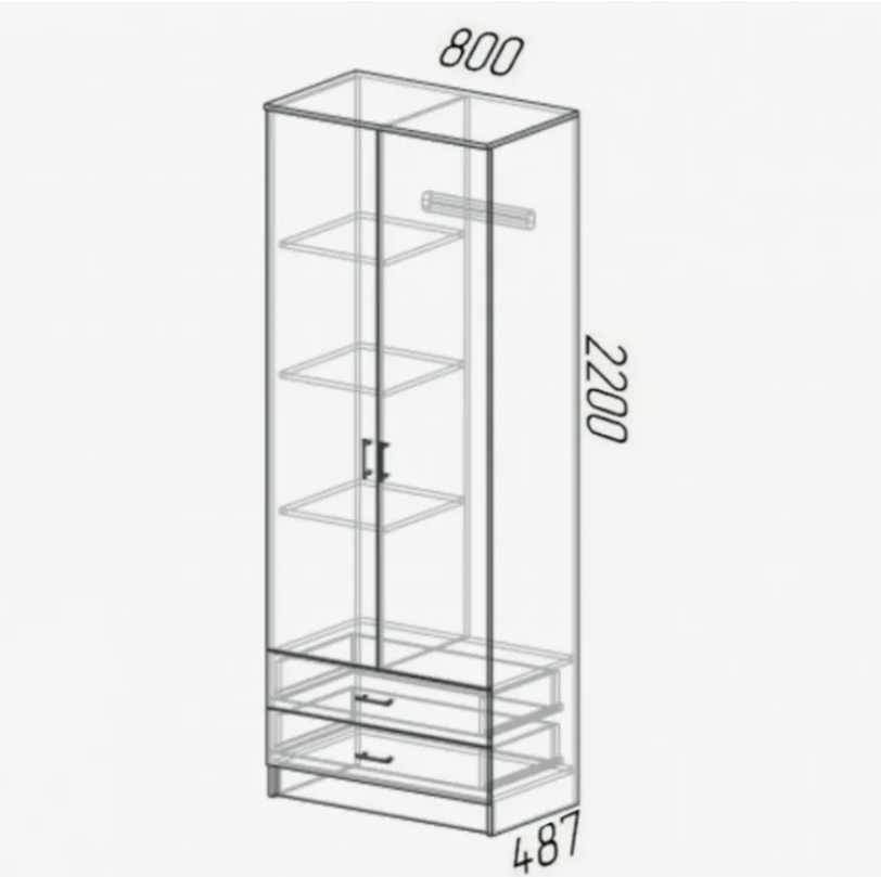 | Комплектация | Штанга для одежды, выдвижные ящики, полки |