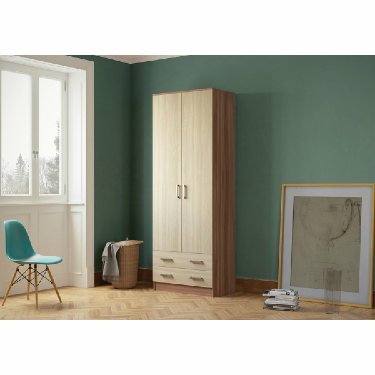 Шкаф двухдверный Эра Дуэт платяной дуб вотан / белый 80х48.7х220 см