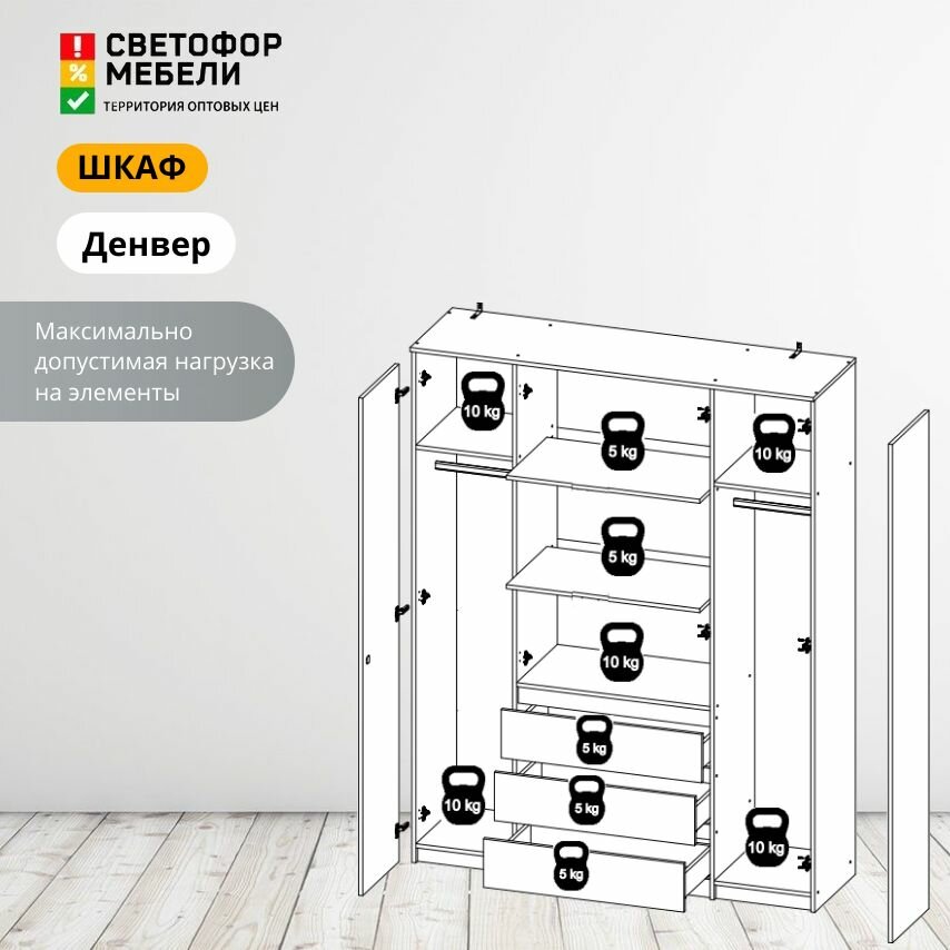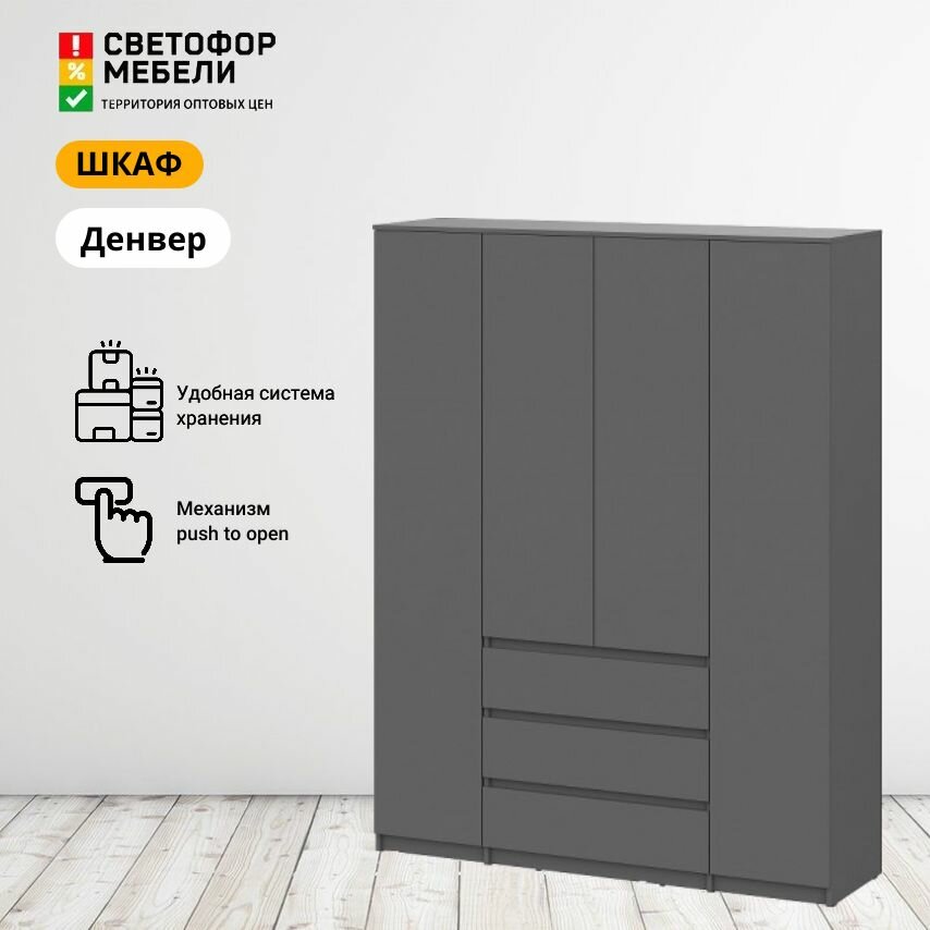 Шкаф распашной Денвер Мебельный рай 1600х2052х462, Графит серый интересное: