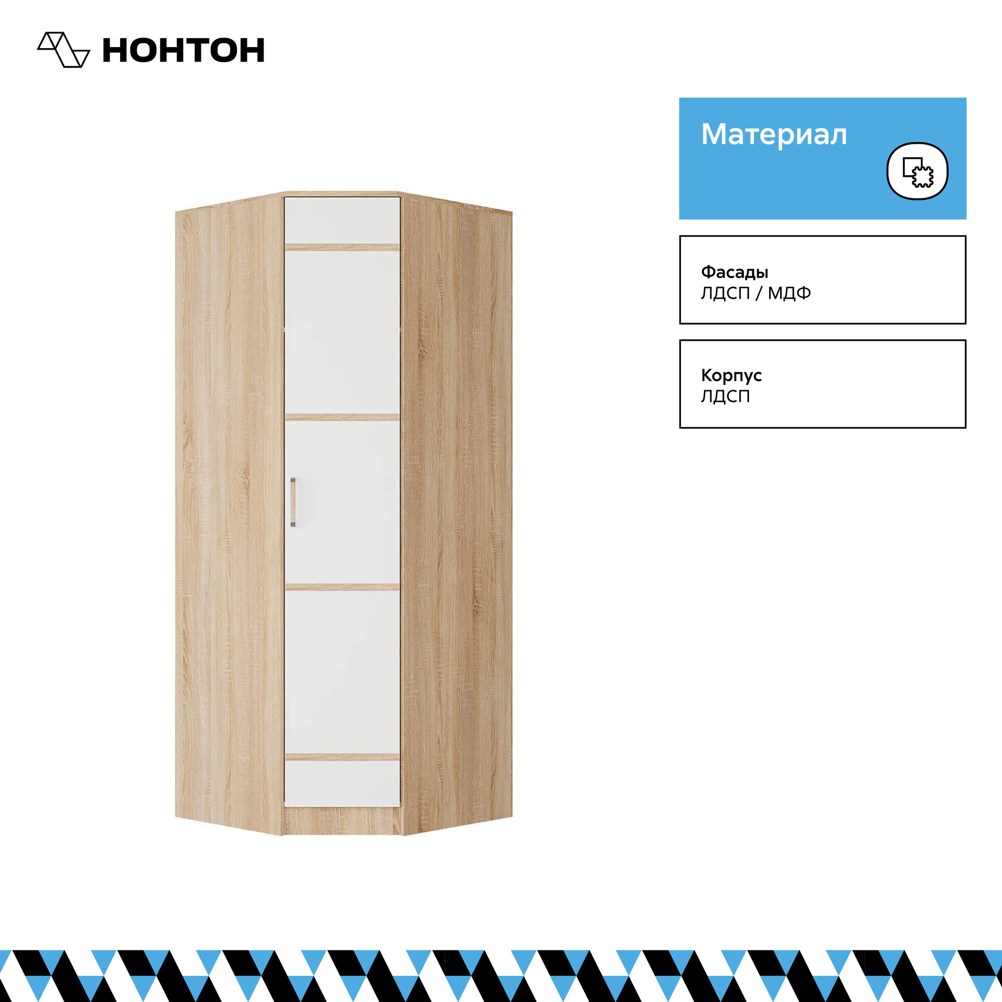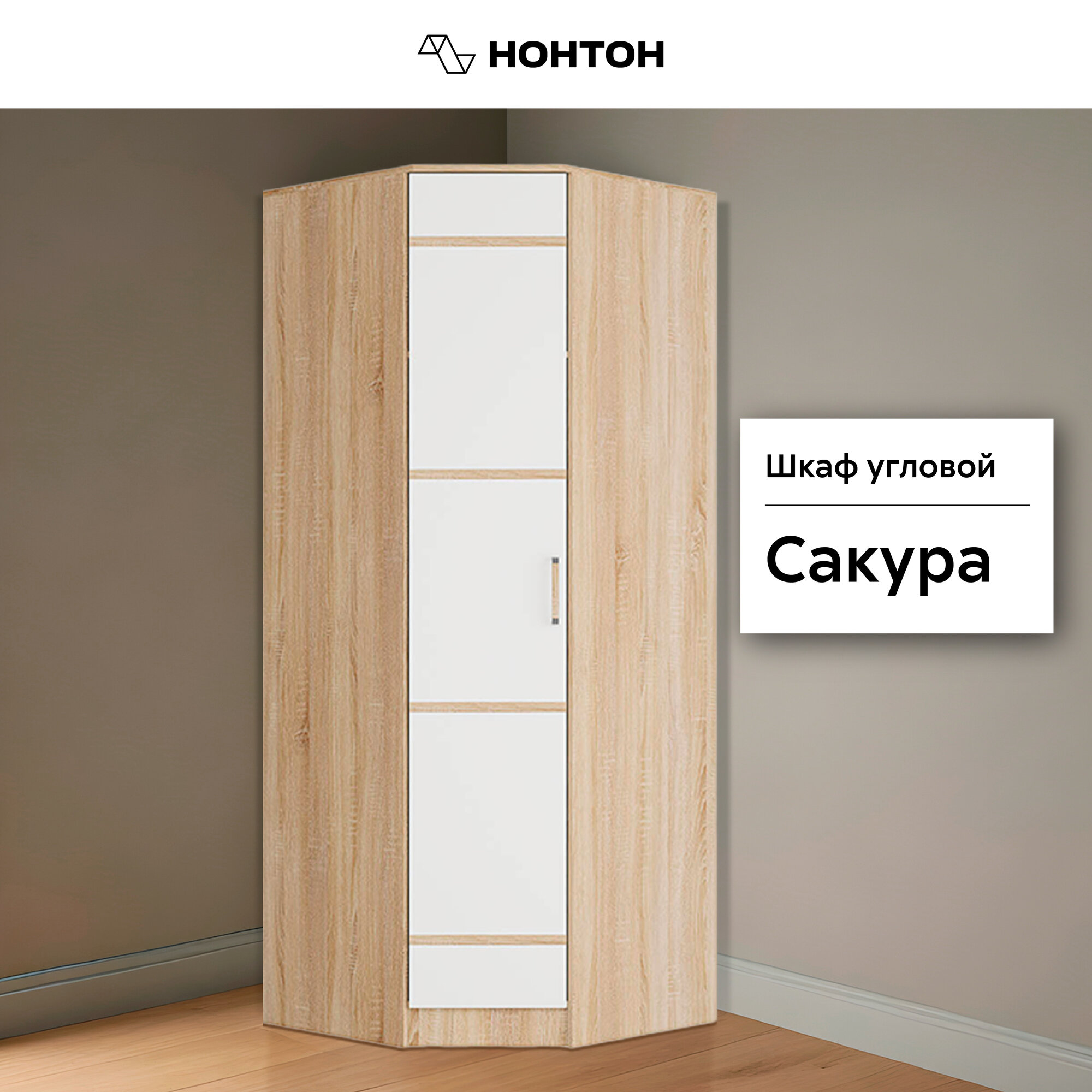 Купить Шкаф угловой для одежды Нонтон Сакура, дуб сонома / белый 87 см