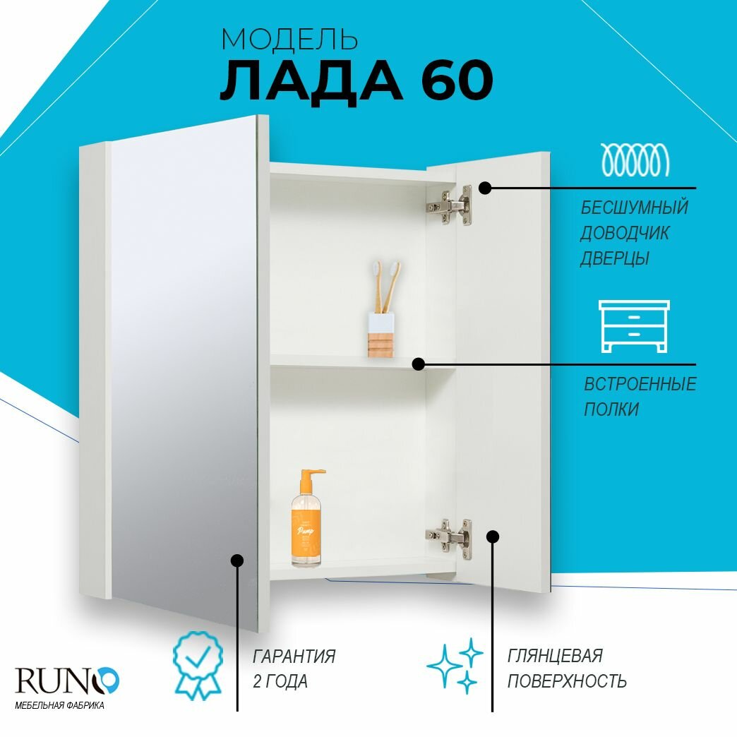 Зеркальный шкаф Runo Лада 60 00-00001159 Белый