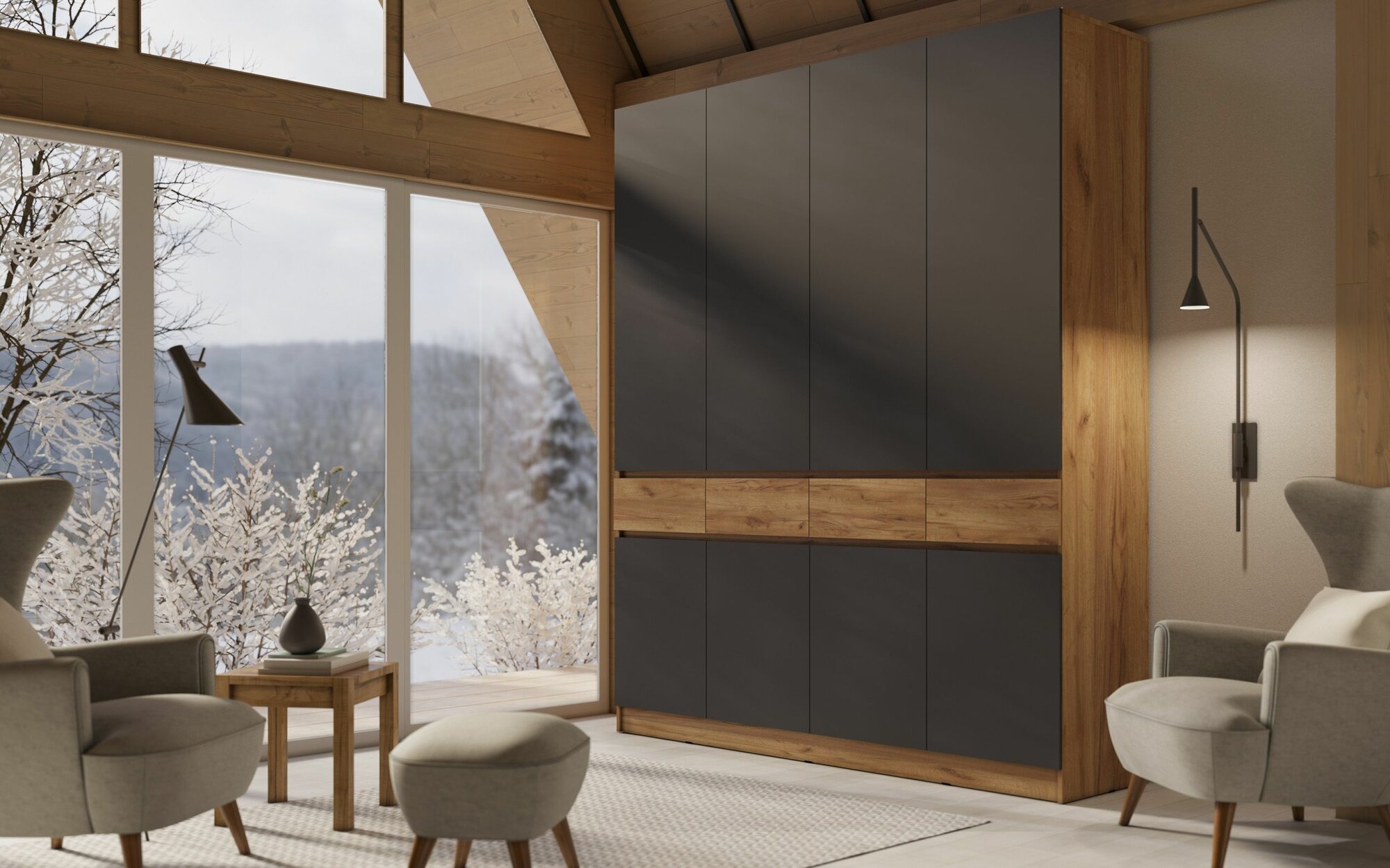 Купить Шкаф распашной четырехстворчатый Артек дуб крафт/графит