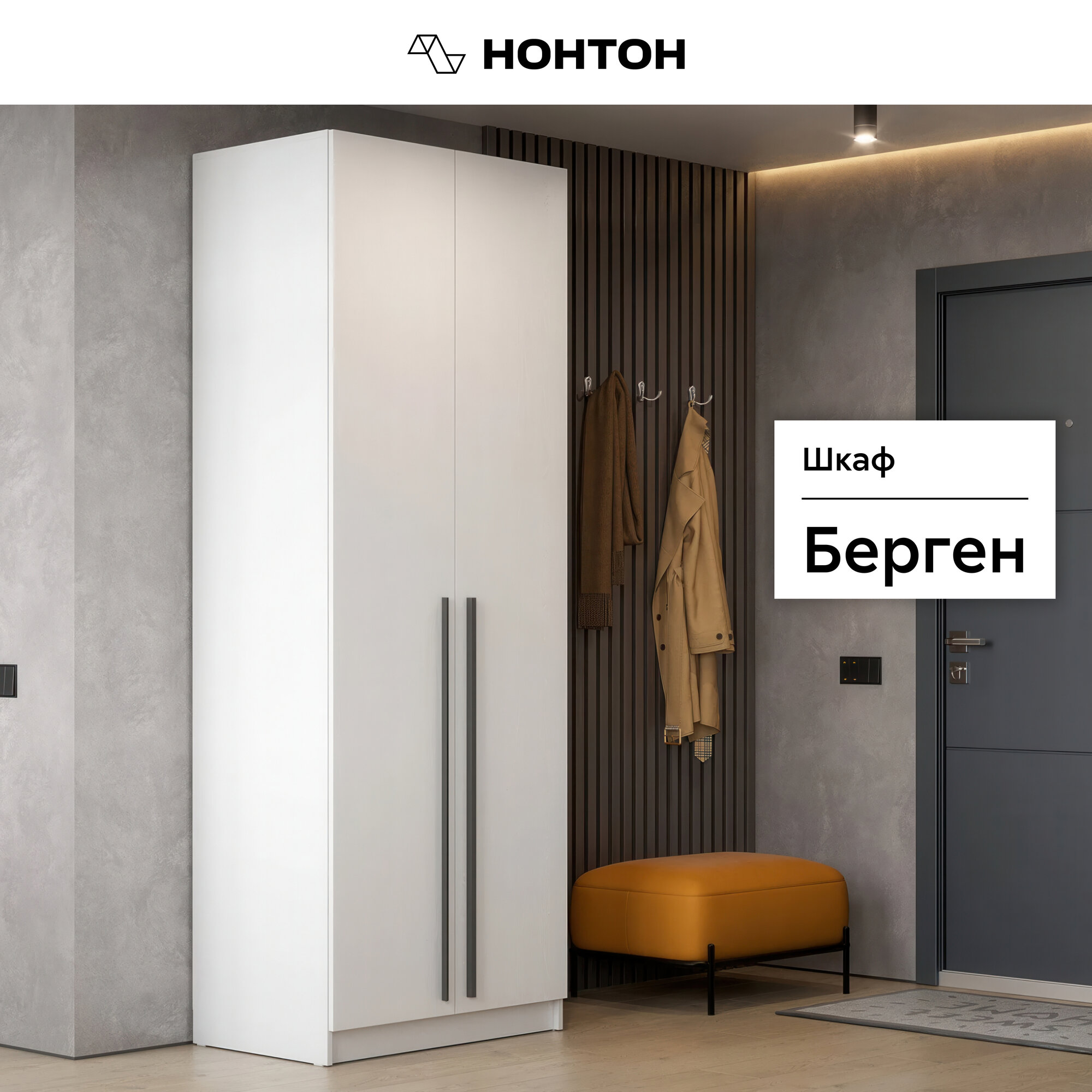 Шкаф для одежды c зеркалом Нонтон Берген, белое дерево, 80 см