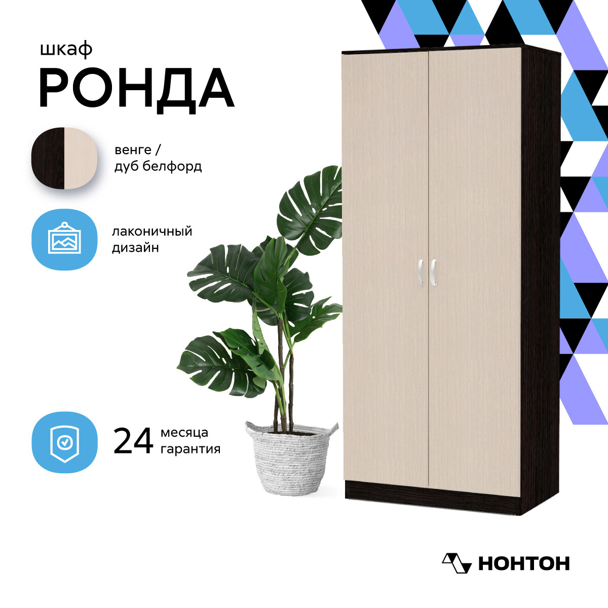 Купить Шкаф для одежды Нонтон Ронда, венге / дуб белфорд 80 см