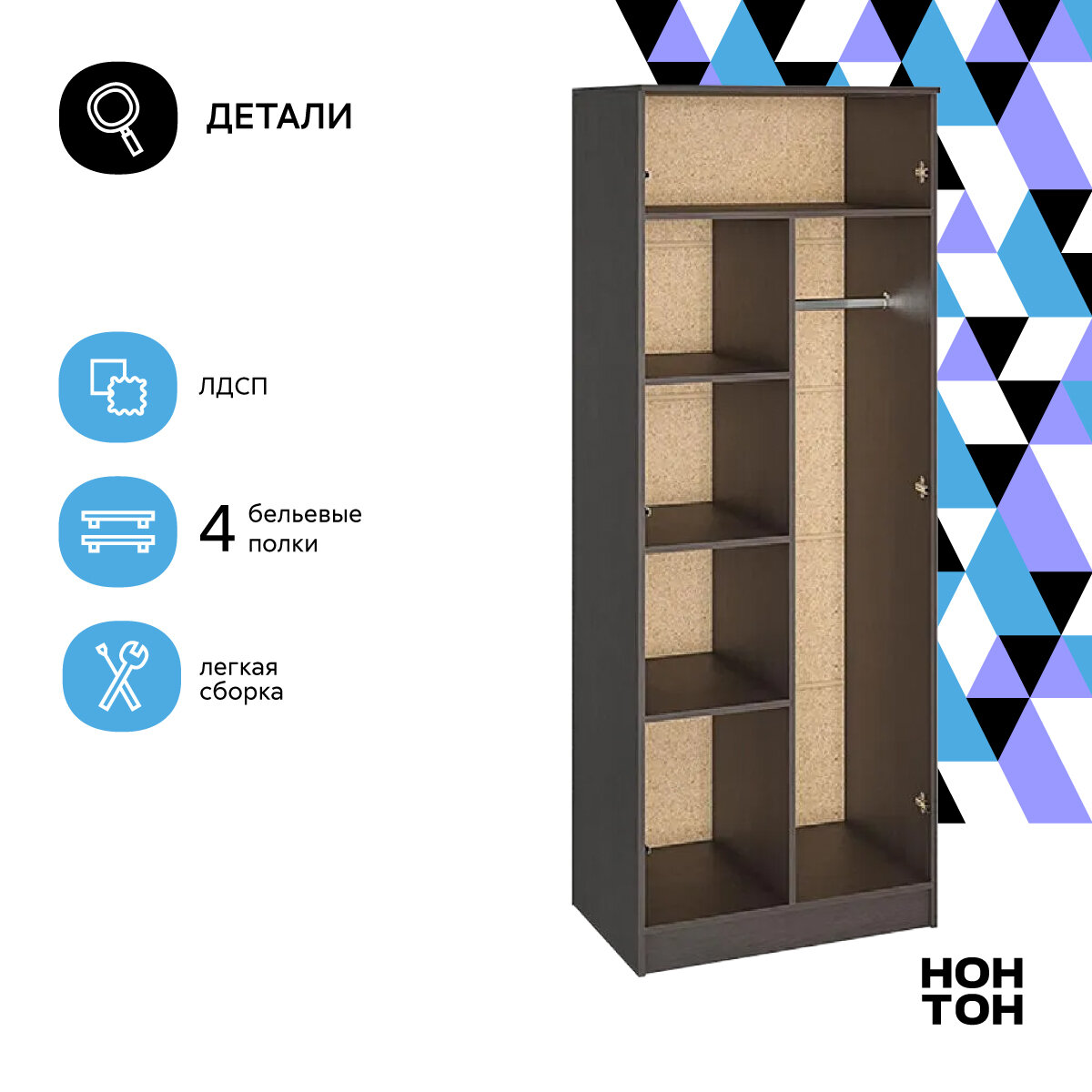 Шкаф для одежды Нонтон Ронда, венге / дуб белфорд 80 см интересное: