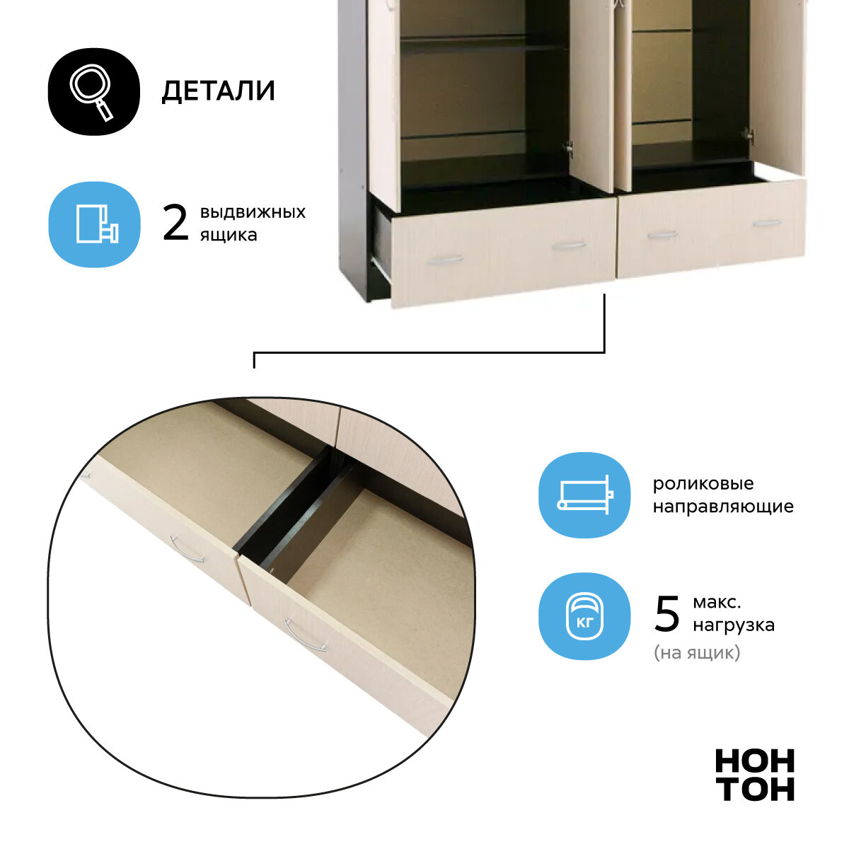 Шкаф распашной Берген ШК-1200 кашемир/кашемир + ящики ВН2Я (Интерьер-Центр)