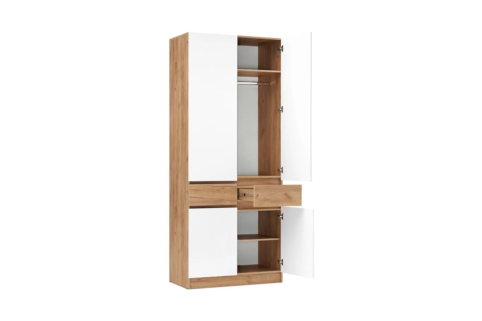 Шкаф для одежды с ящиками Нонтон Роджина, дуб крафт / белый глянец, 199 см