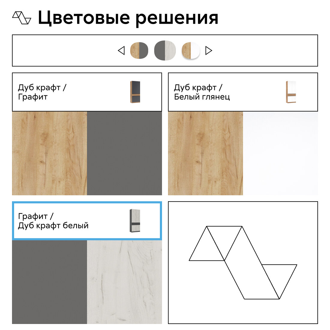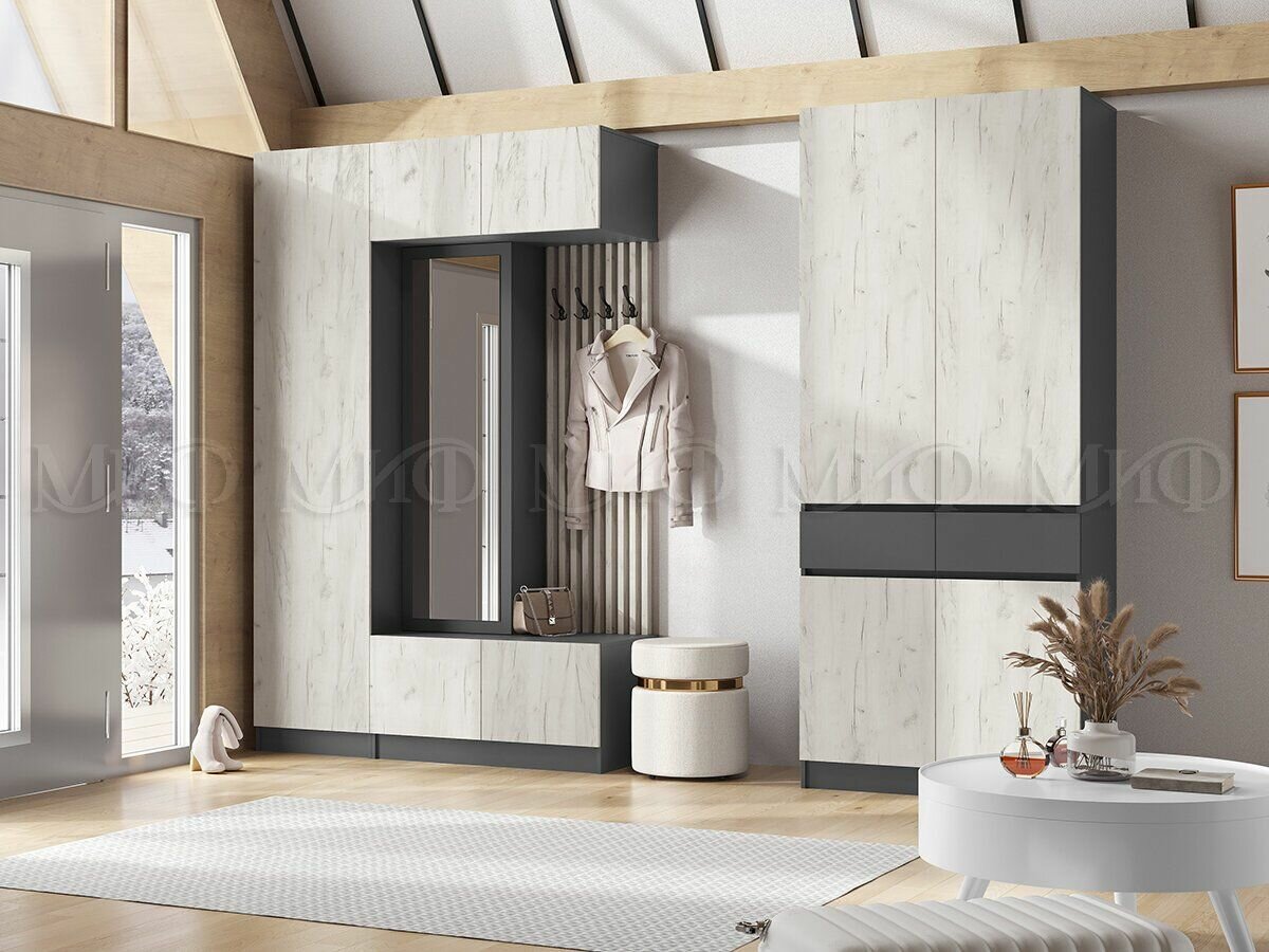 Прихожая Роджина Шкаф 3-х ств Дуб белый крафт, Графит/Шкаф для одежды с ящиками, 150х240х52 см