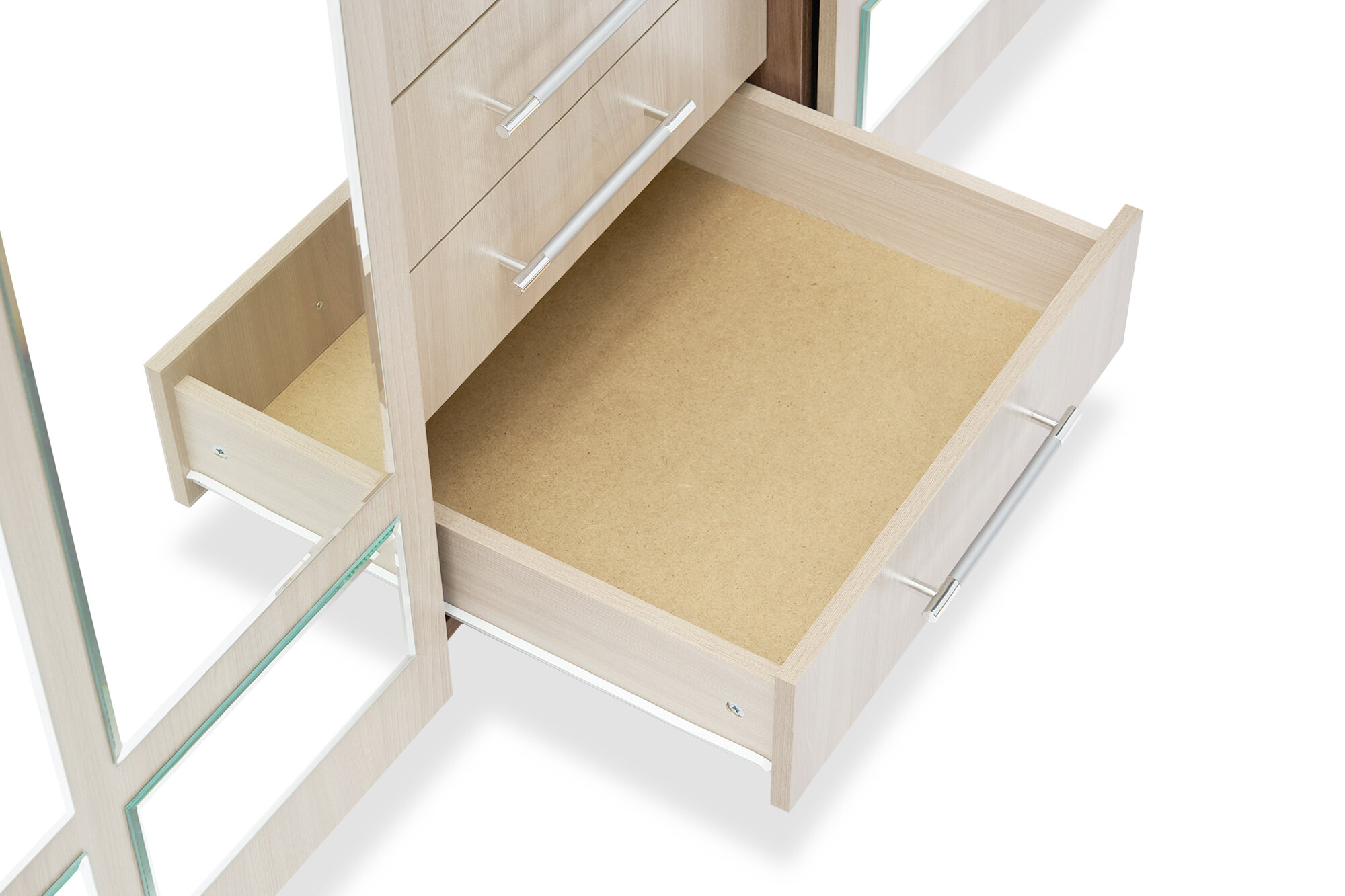 | Комплектация | Шкаф 1 шт. В центральной части — три вместительных ящика, над ними отделение с распашной дверцей и несколькими полочками. |