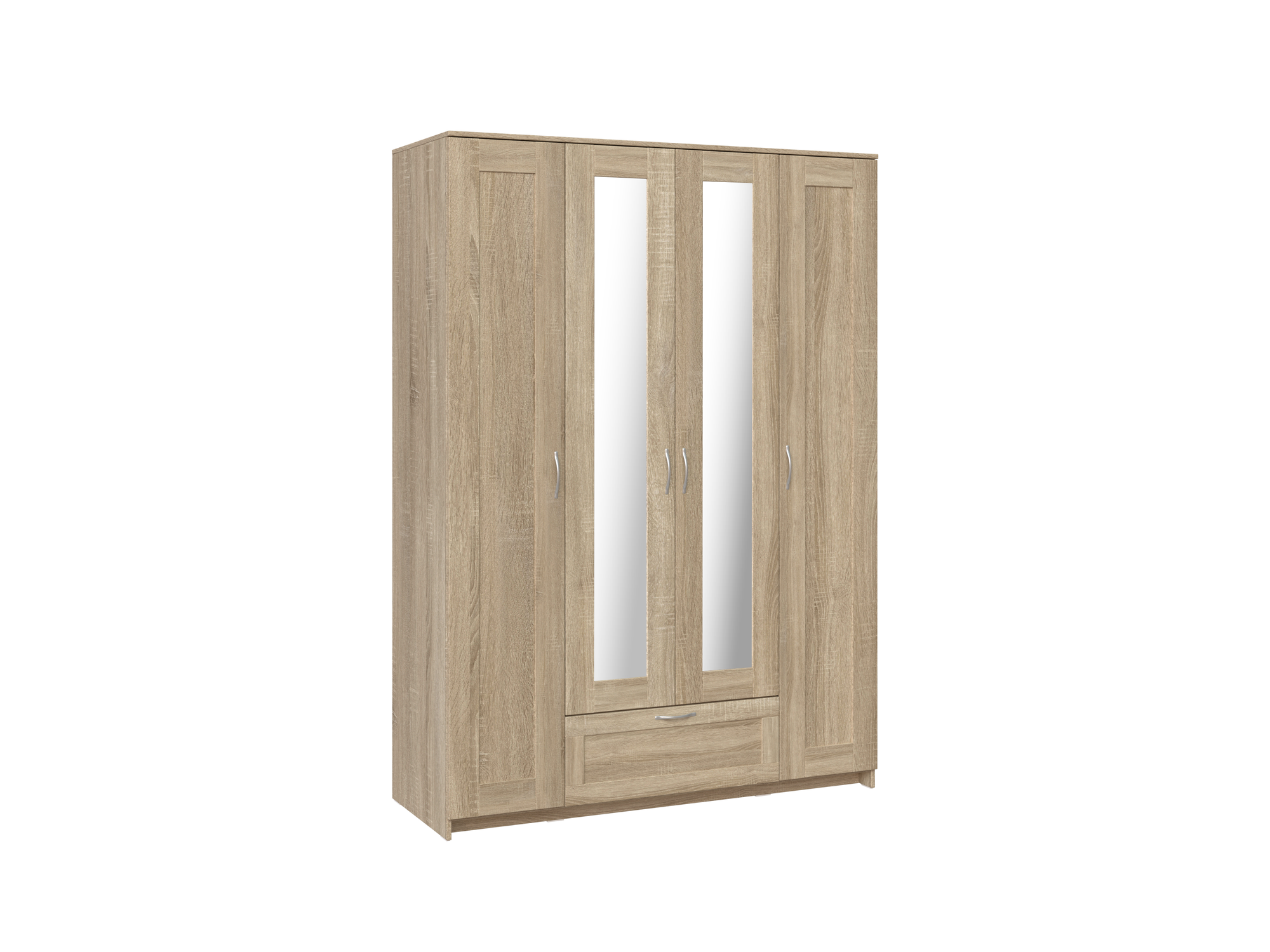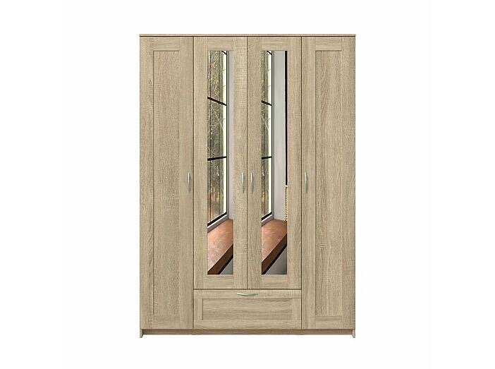 Шкаф сириус четырёхдверный с одним выдвижным ящиком и двумя зеркалами, цвет Дуб Сонома