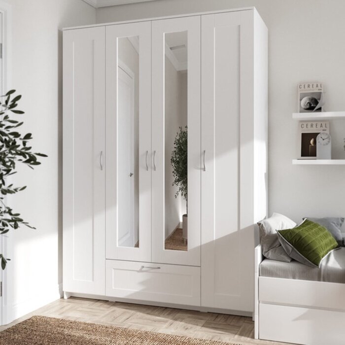 Шкаф ГУД ЛАКК Сириус, 4 двери и 1 ящик с зеркалом, 156х59х220 см, белый