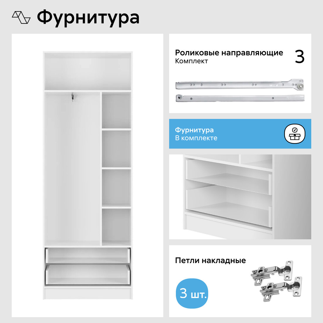 Шкаф для одежды распашной Нонтон Луас, 120 см, 7 полок и штанга, белый глянец