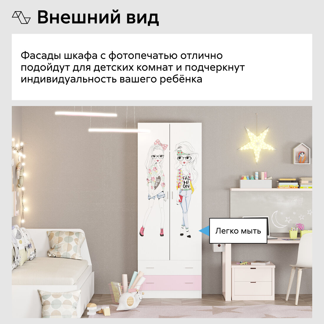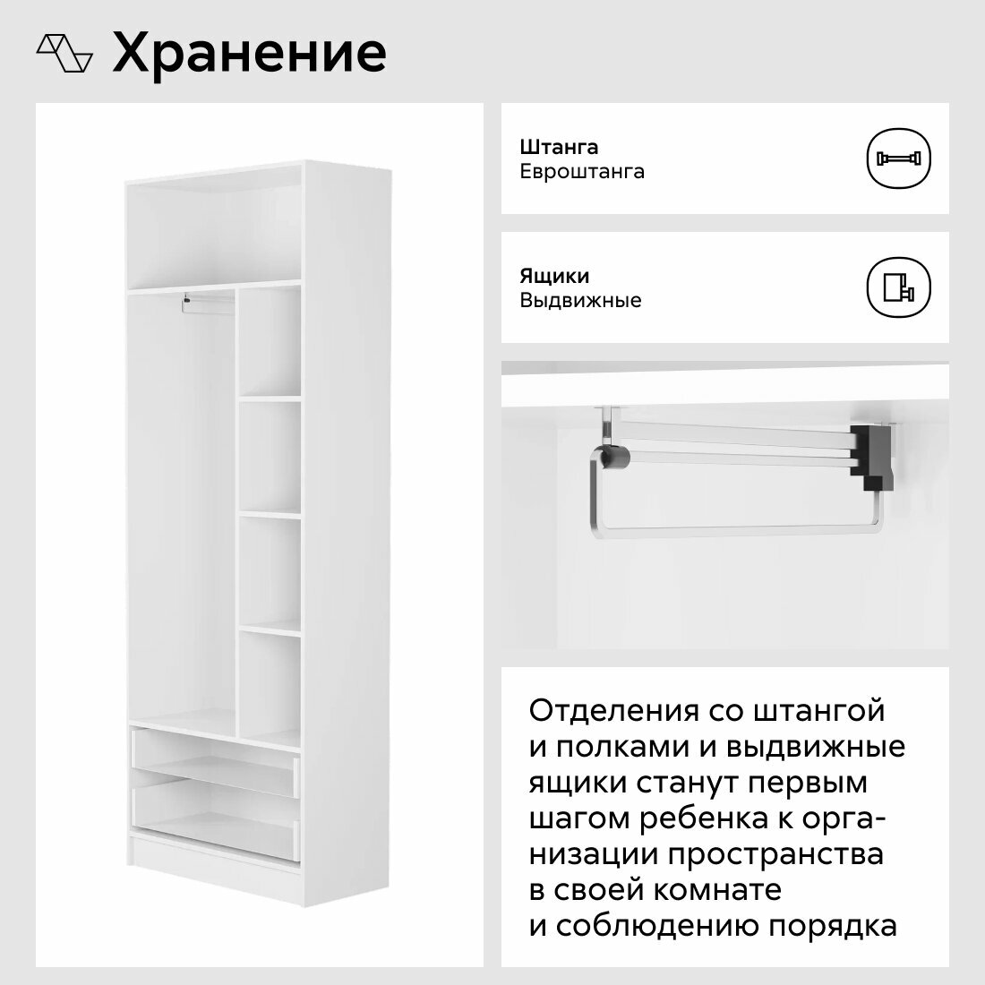 Шкаф для одежды с ящиками детский Нонтон Вега NEW белый глянец / белый, 80 см