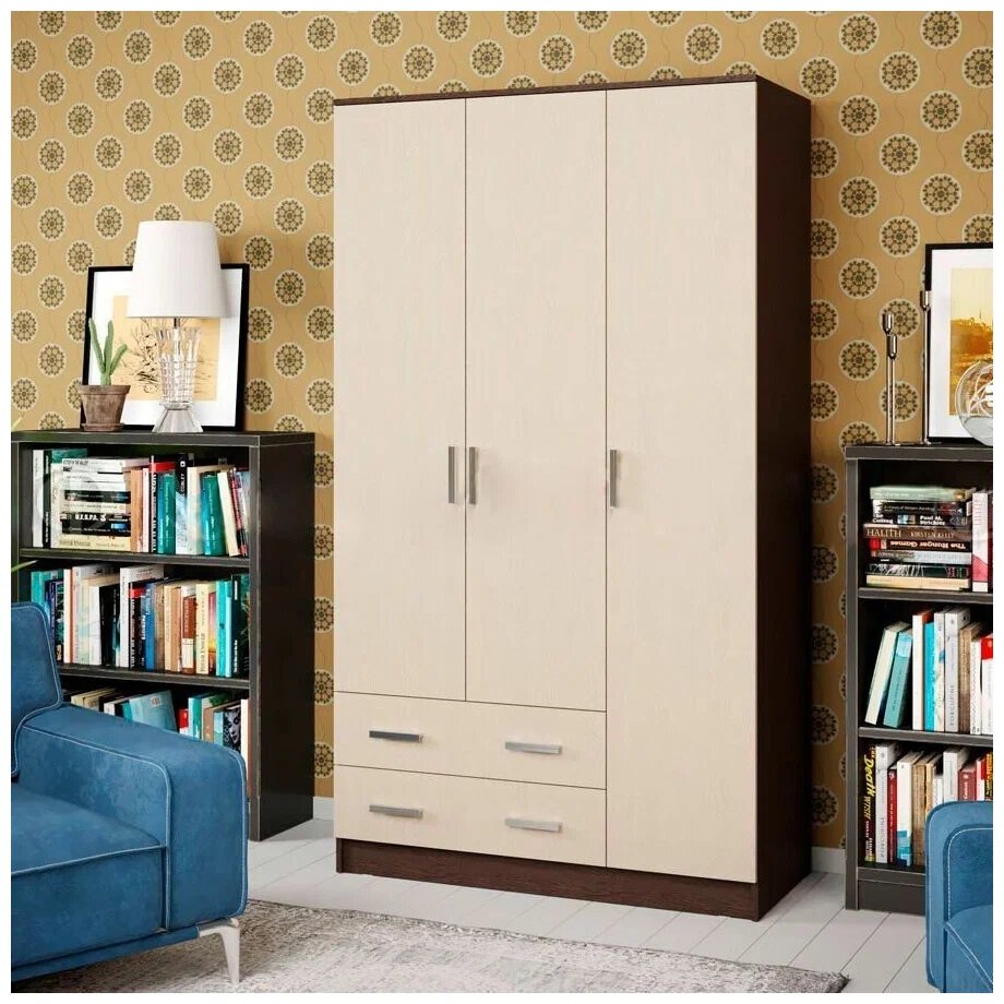 Шкаф 3-х створчатый Миф дуб беленый / венге 120х52х201.6 см