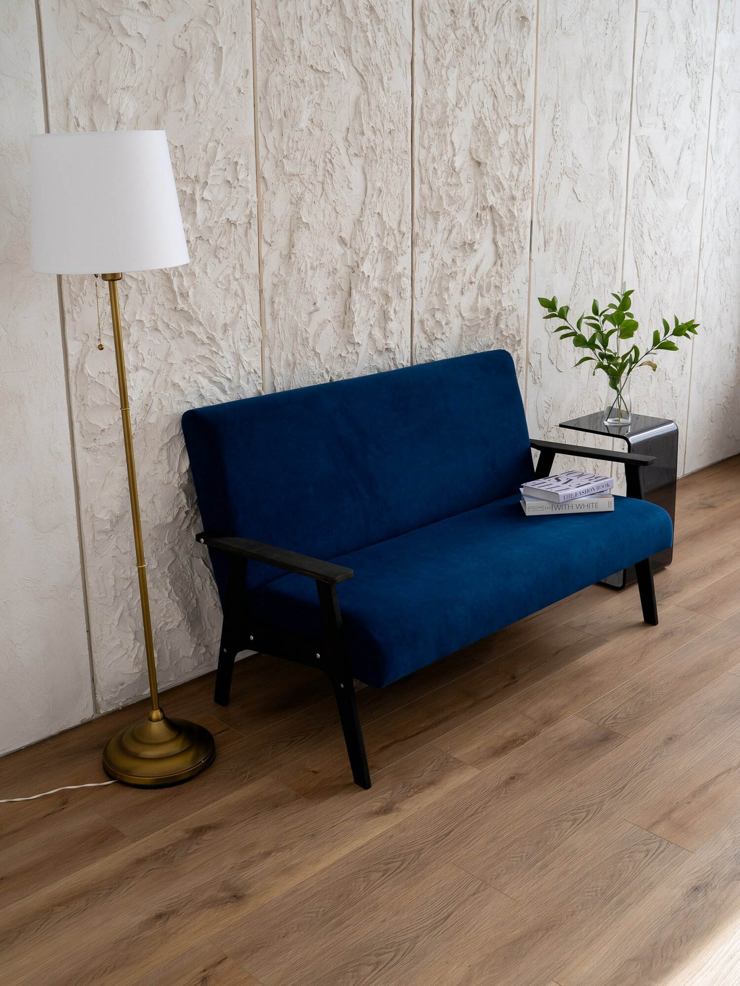 Прямой диван Relax, синий,черное масло 2-х местный, 138x75x80