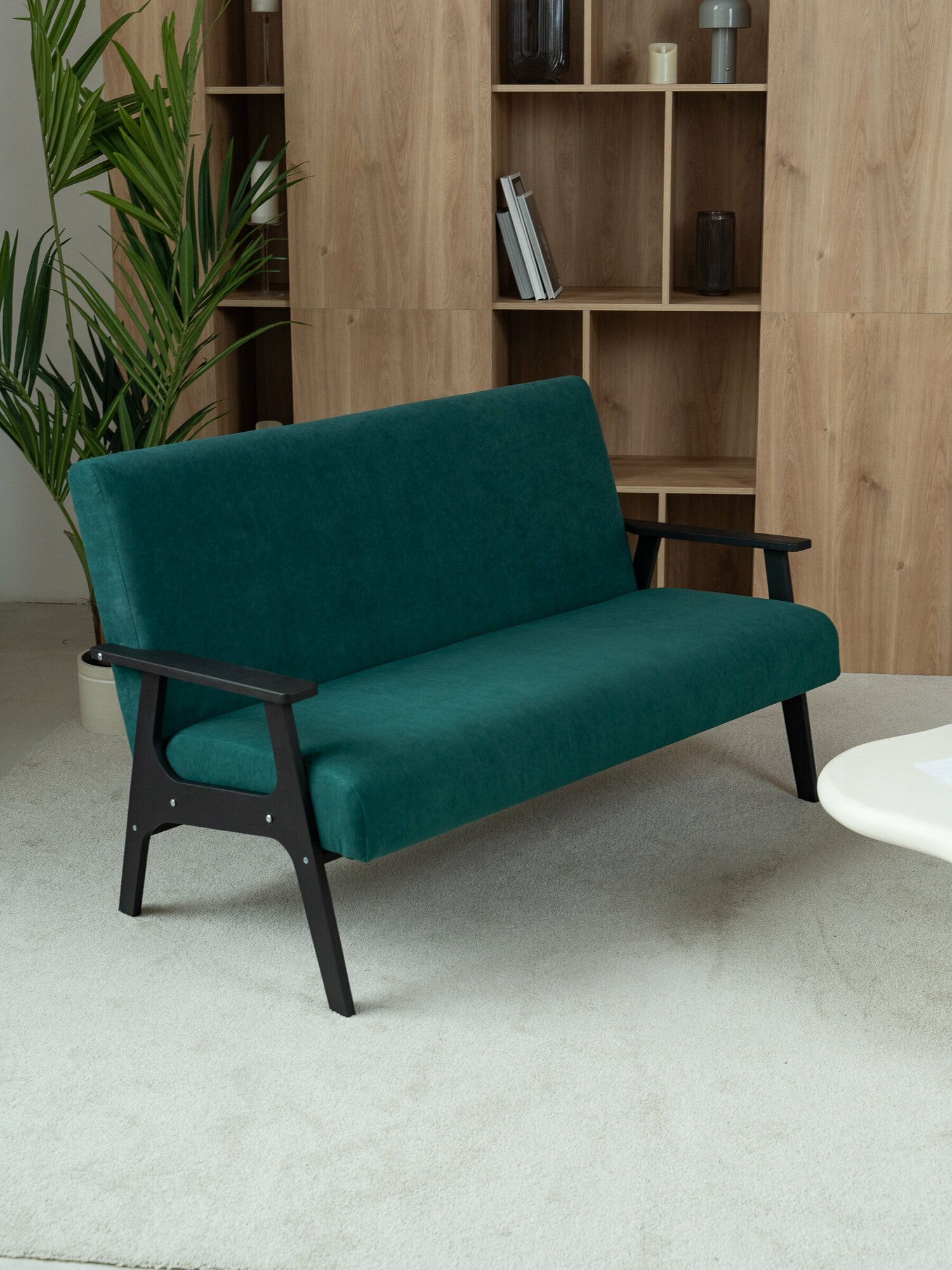 Прямой диван Relax, изумрудный,черное масло 2-х местный, 138x75x80
