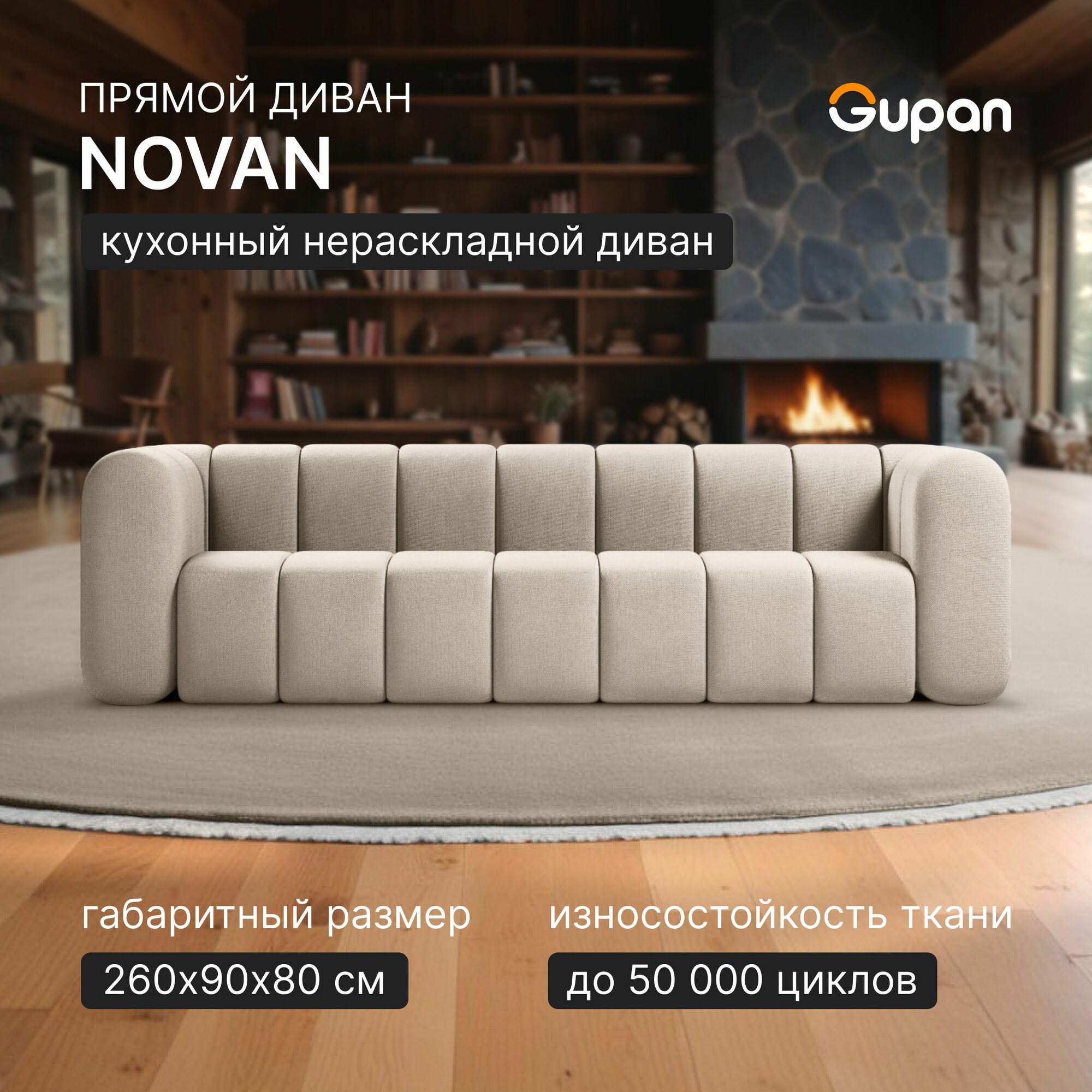 Диван Gupan Нован Велюр Amigo Beige, диван кухонный, беспружинный, диван прямой, в гостиную, лофт