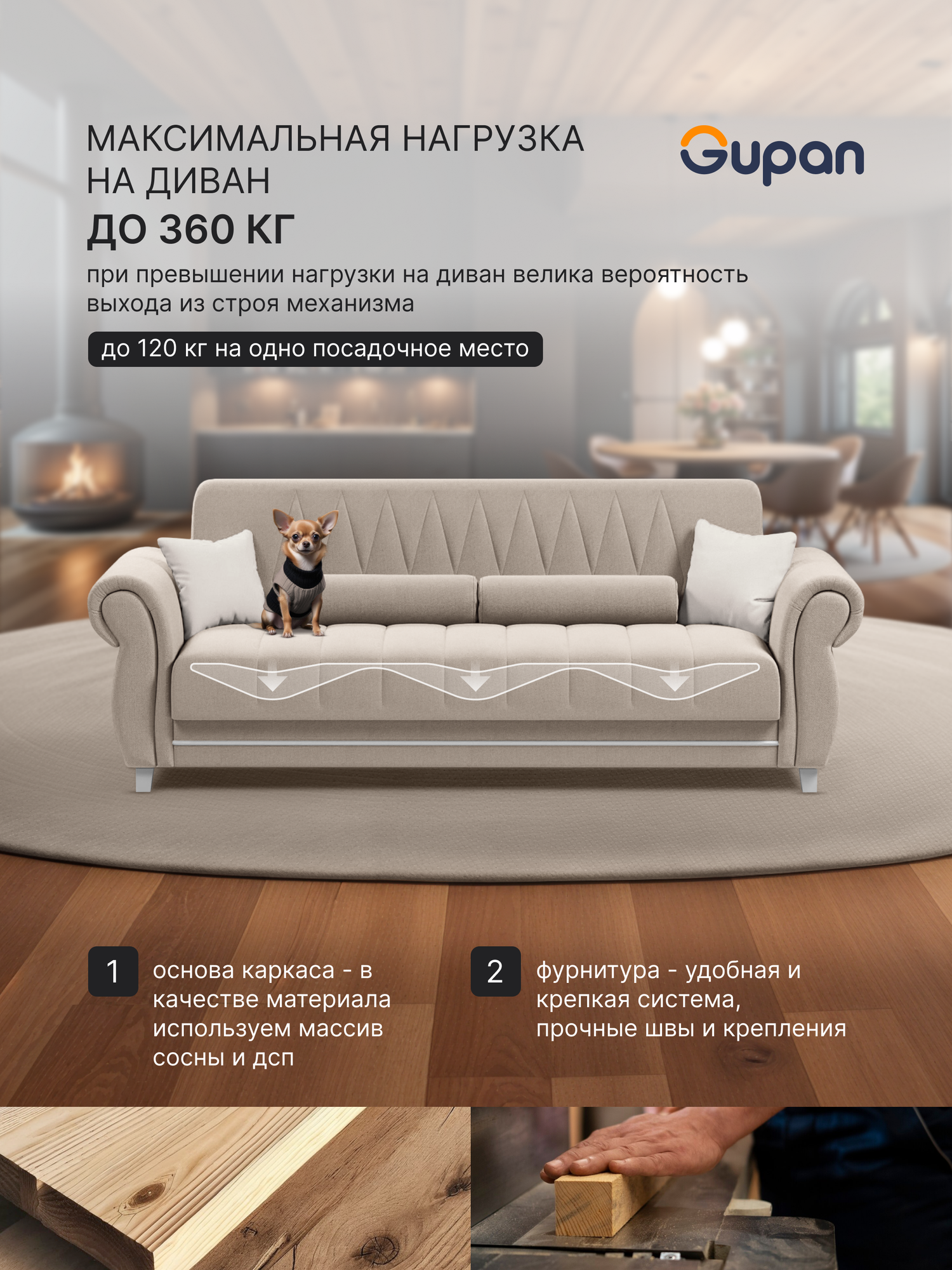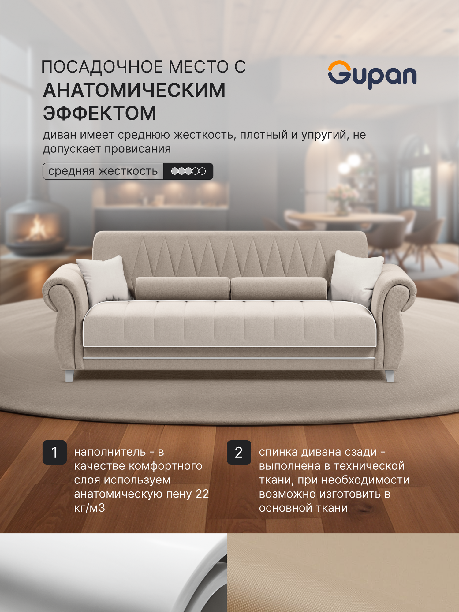 Диван кровать Gupan Роуз Велюр Amigo Beige, раскладной, механизм книжка, беспружинный, с ящиком для белья