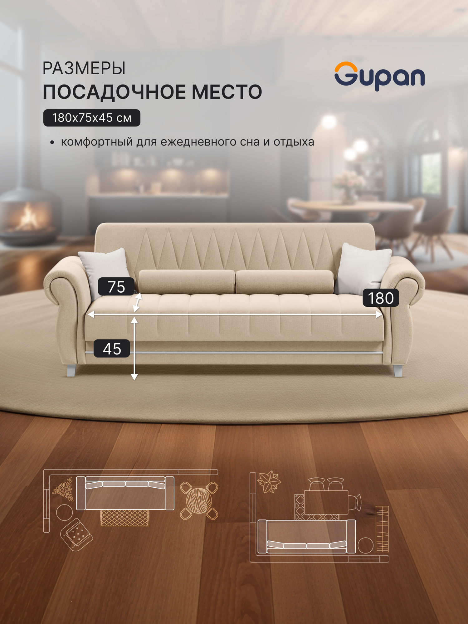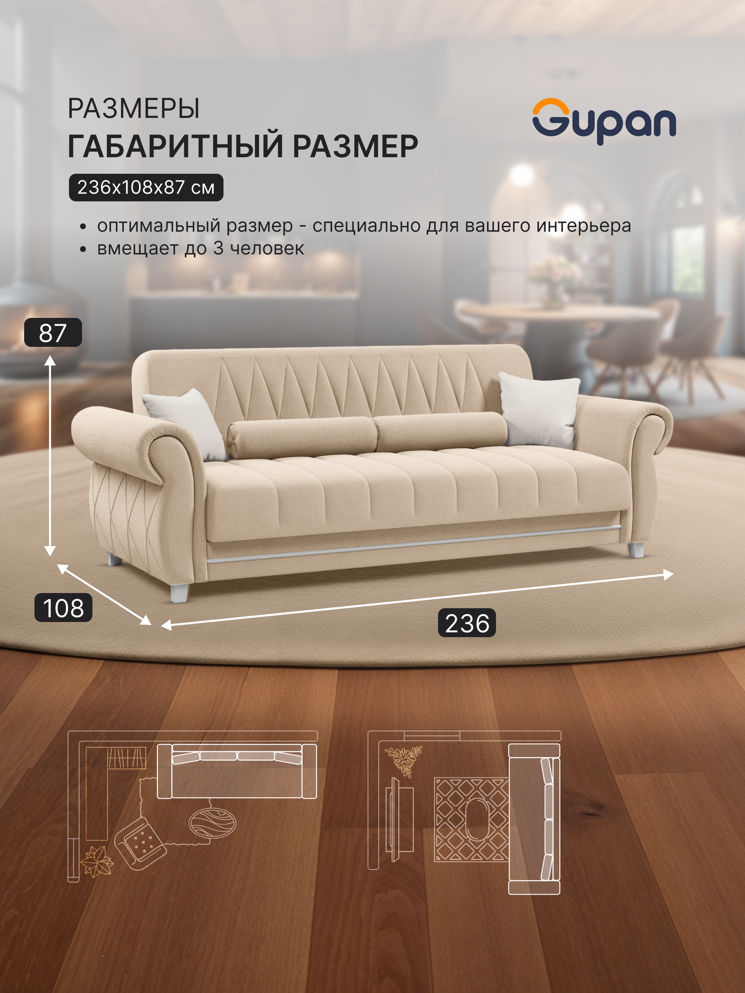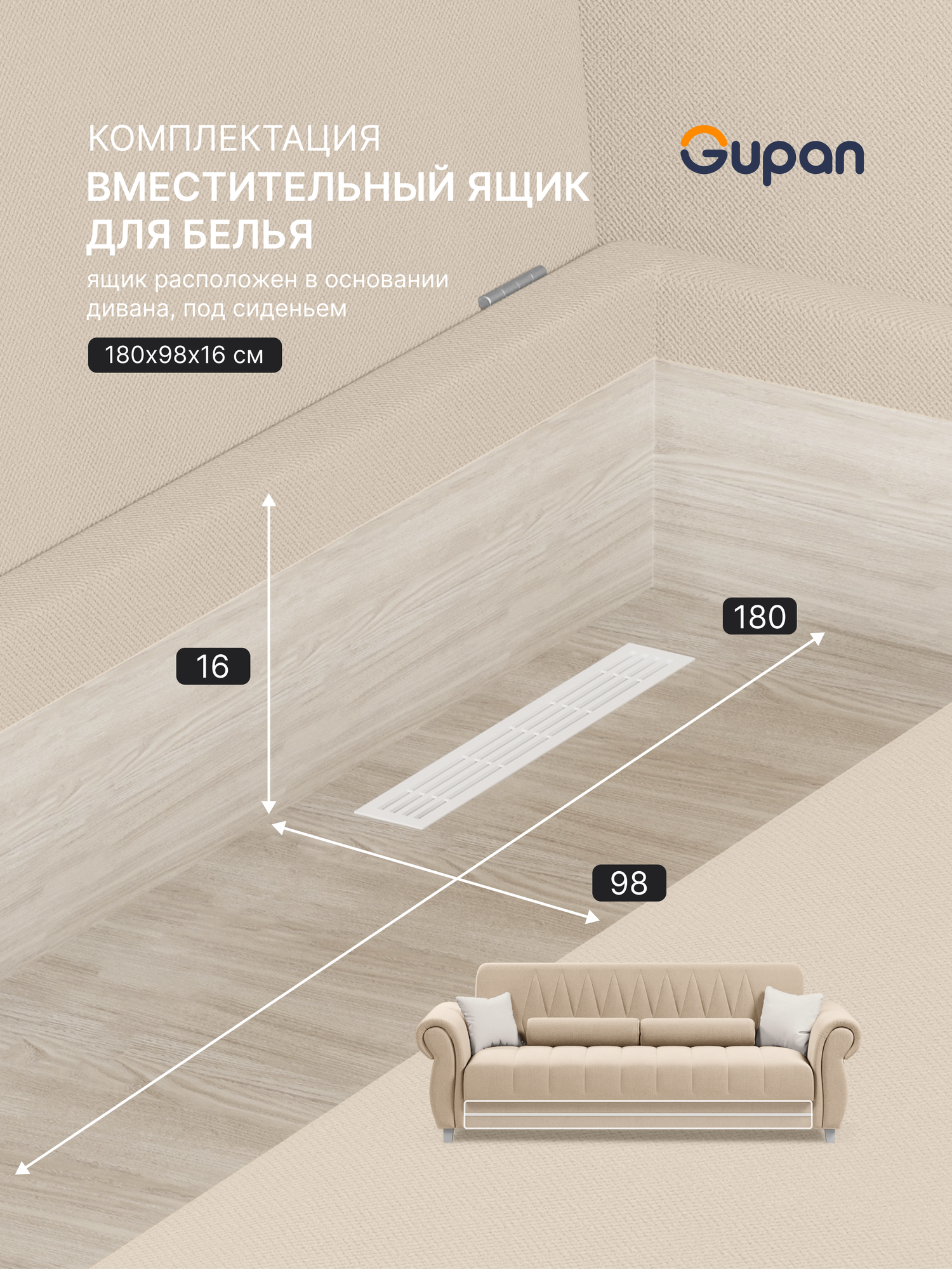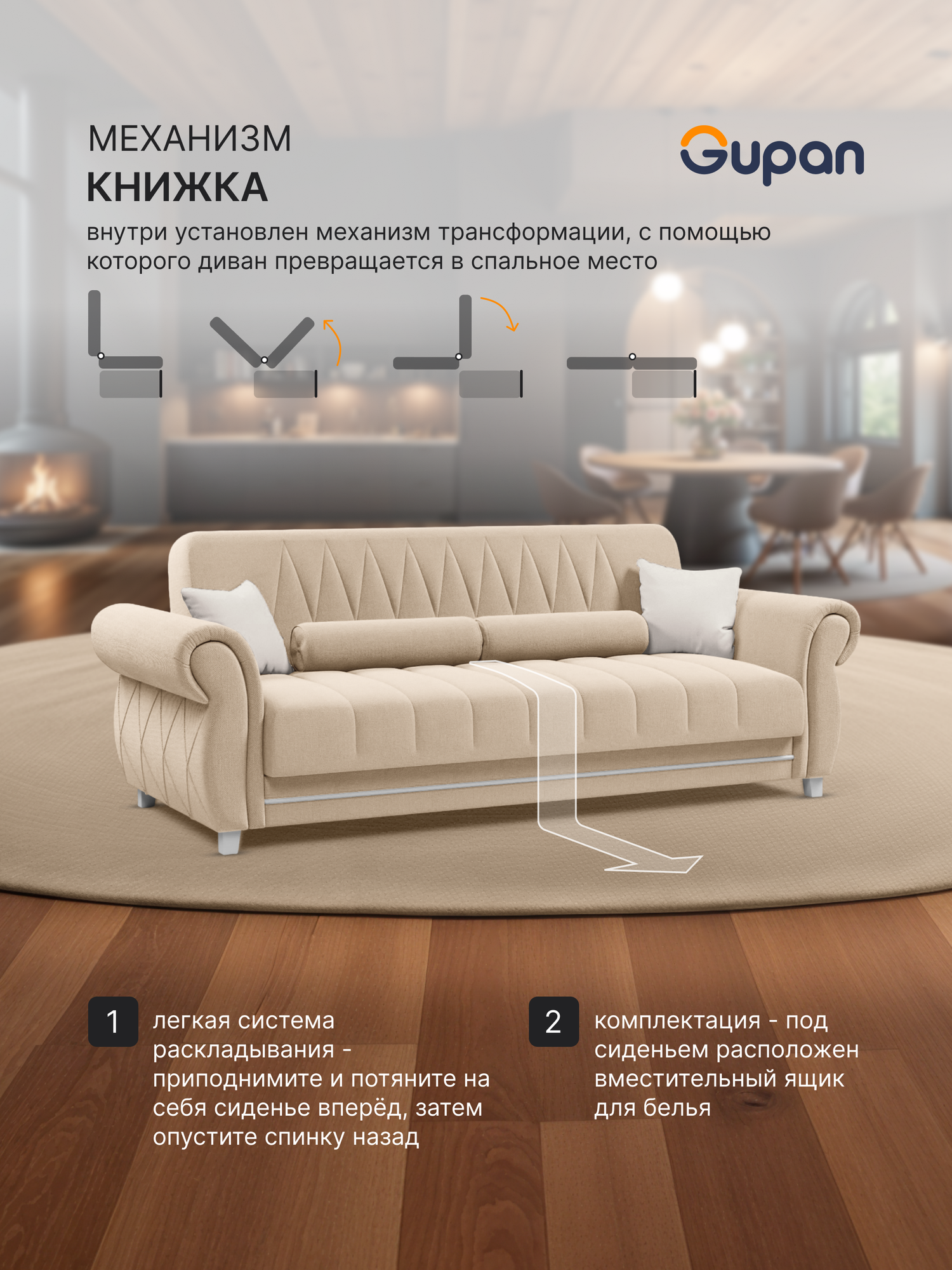 Диван кровать Gupan Роуз Велюр Amigo Beige, раскладной, механизм книжка, беспружинный, с ящиком для белья
