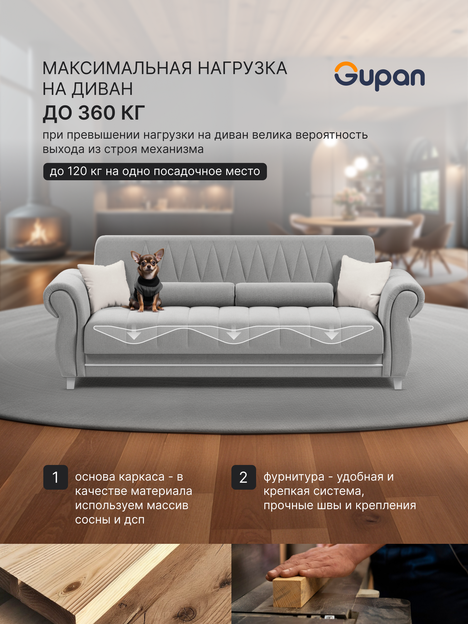 СохранитьДиван кровать Gupan Роуз Велюр Amigo Ash, раскладной, механизм книжка, беспружинный, с ящиком для белья интересное: