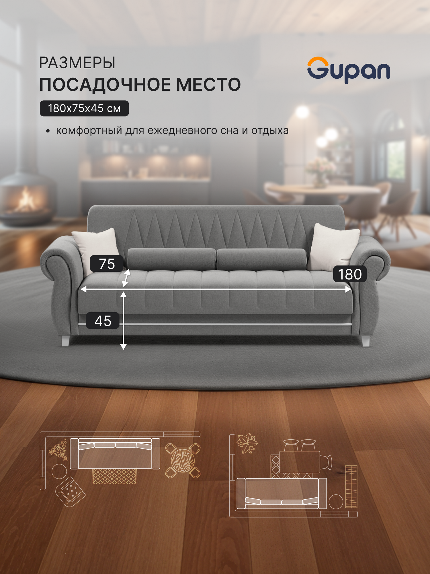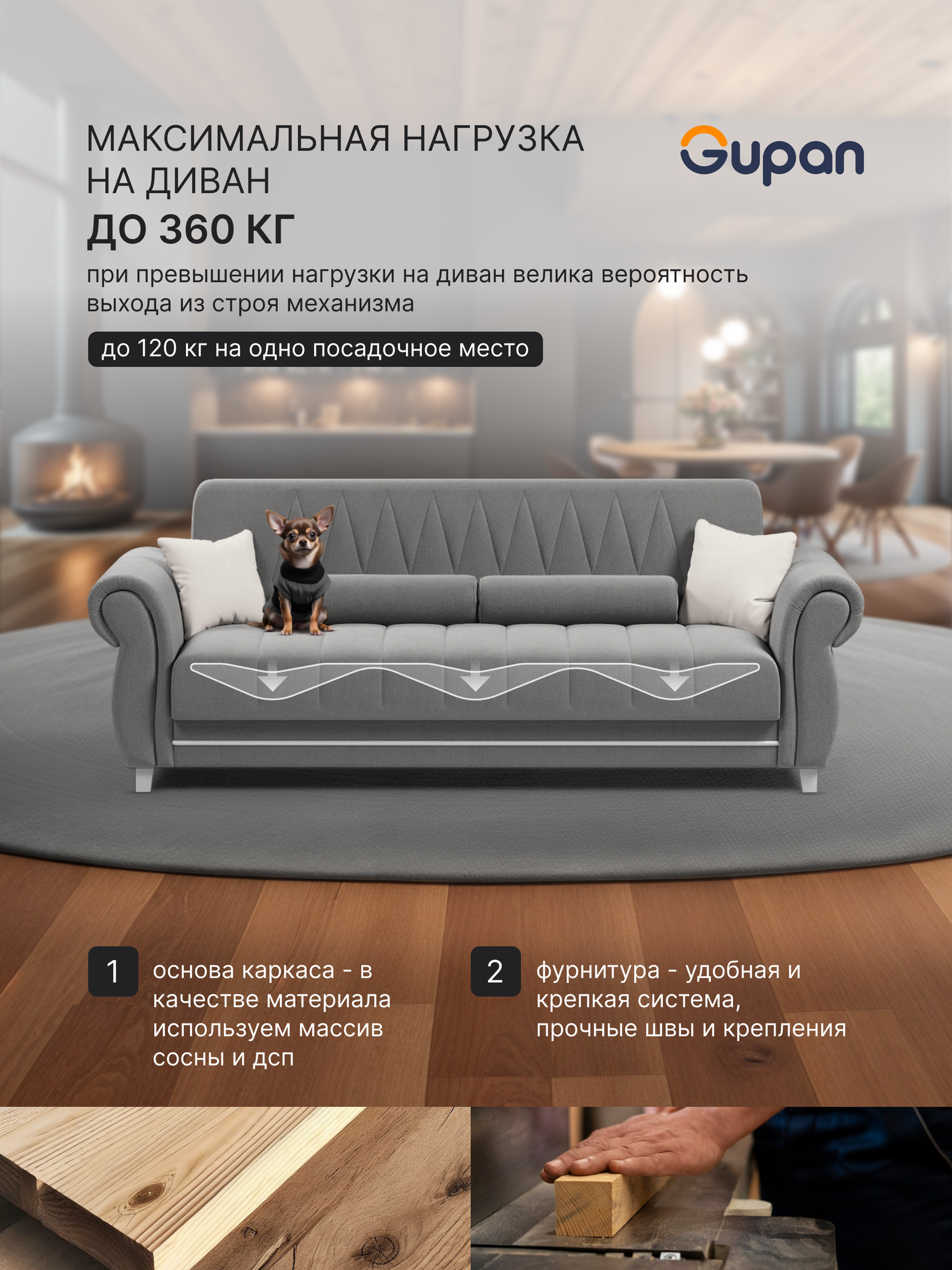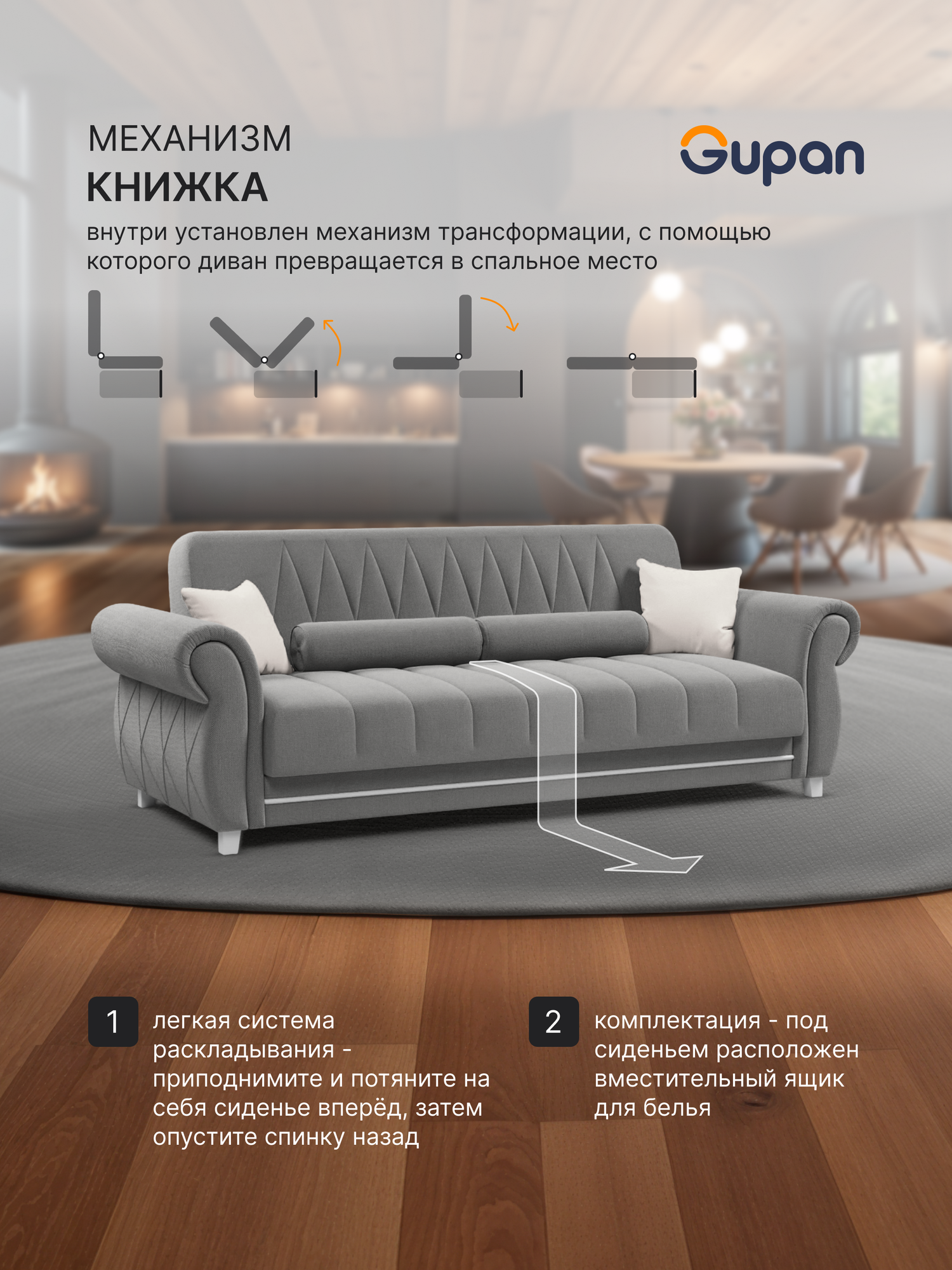 СохранитьДиван кровать Gupan Роуз Велюр Amigo Grey, раскладной, механизм книжка, беспружинный, с ящиком для белья интересное: