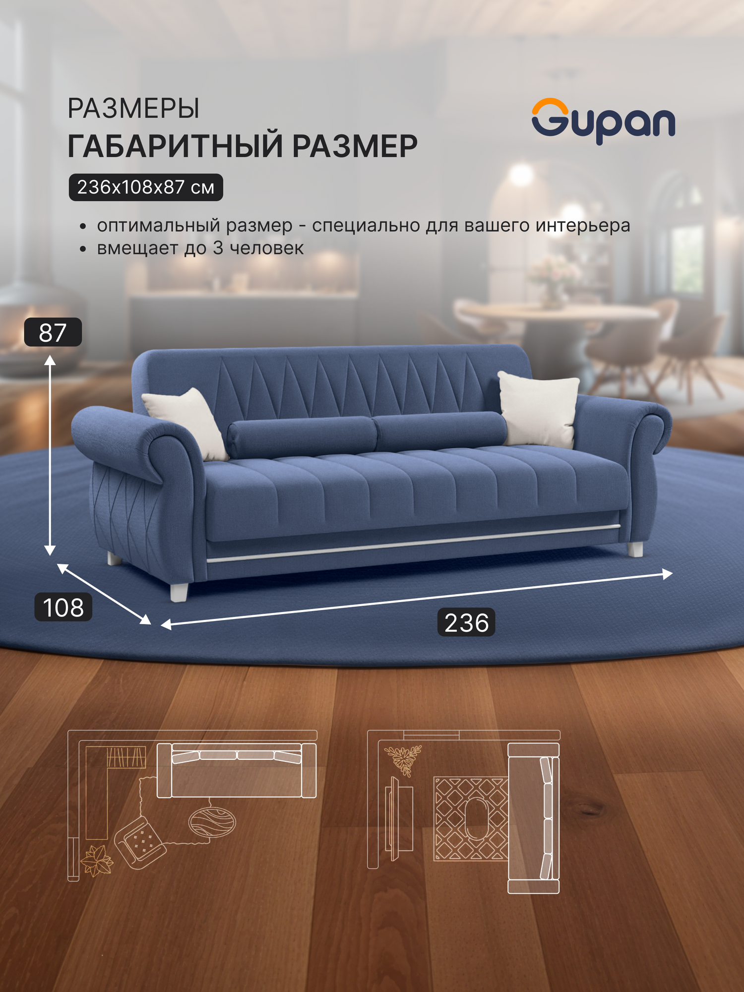 Диван кровать Gupan Роуз Велюр Amigo Blue, раскладной, механизм книжка, беспружинный, с ящиком для белья