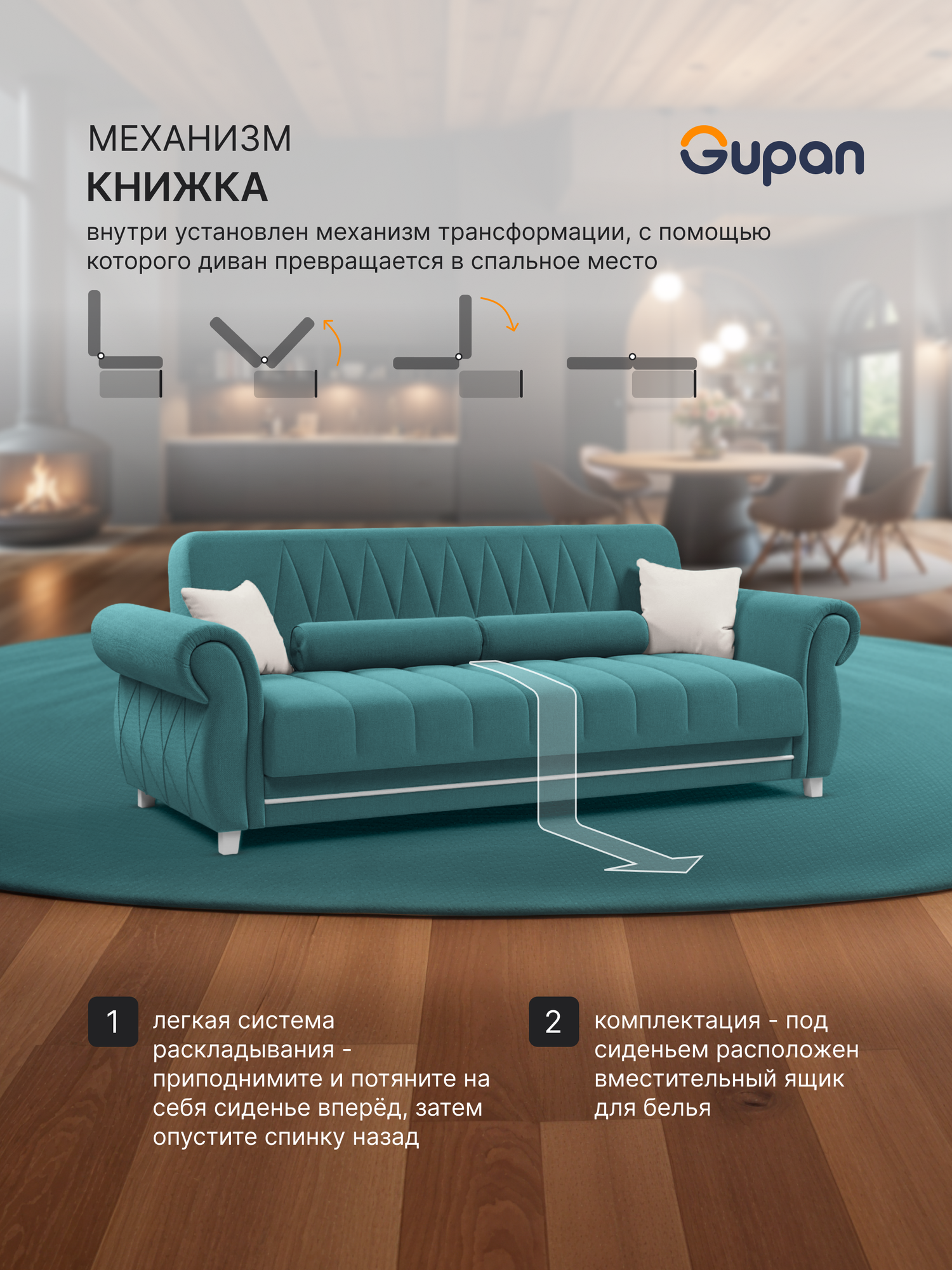 Купить Диван кровать Gupan Роуз Велюр Amigo Lagoon, раскладной, механизм книжка, беспружинный, с ящиком для белья