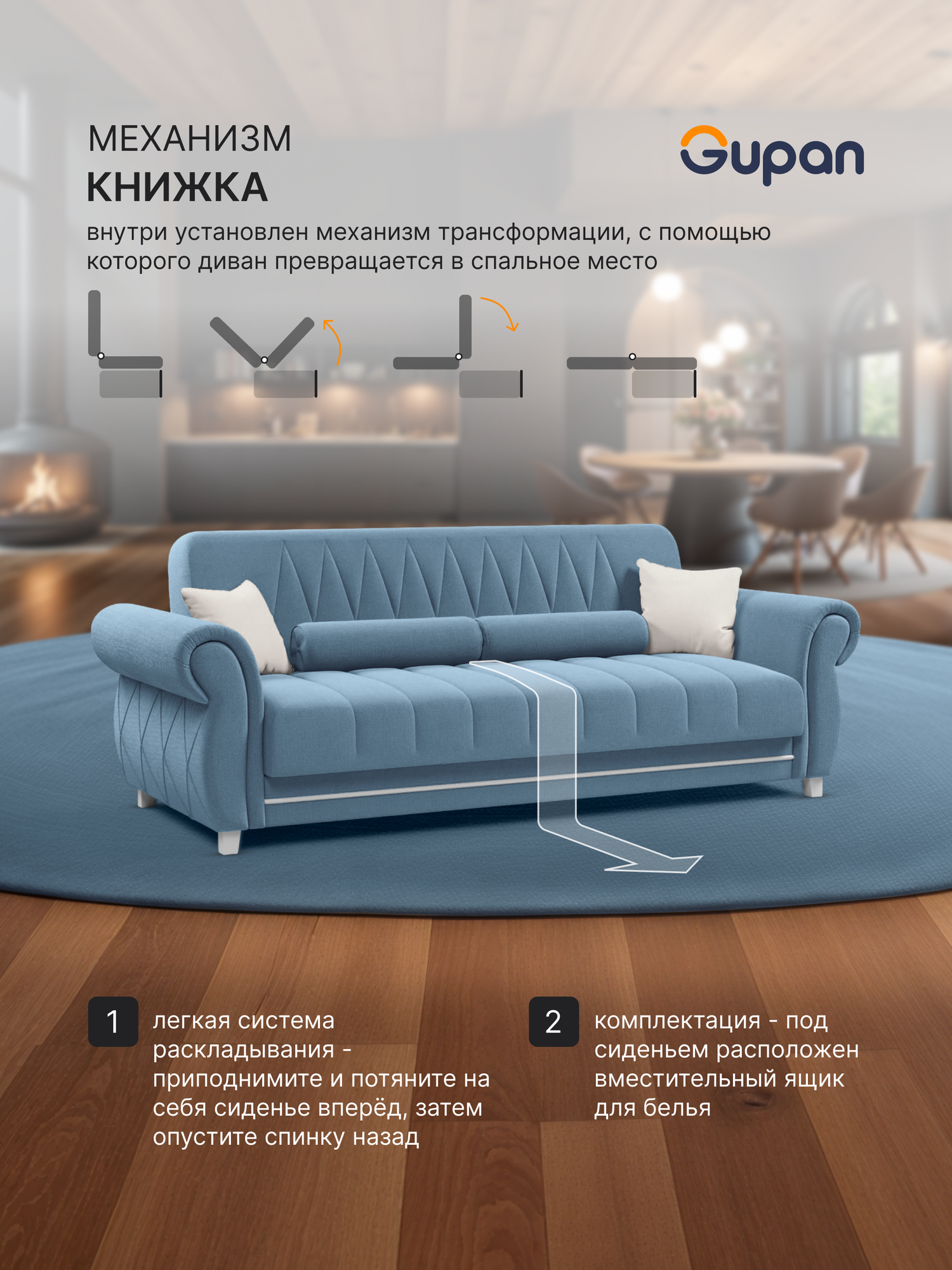 Диван кровать Gupan Роуз Велюр Amigo Lagoon, раскладной, механизм книжка, беспружинный, с ящиком для белья