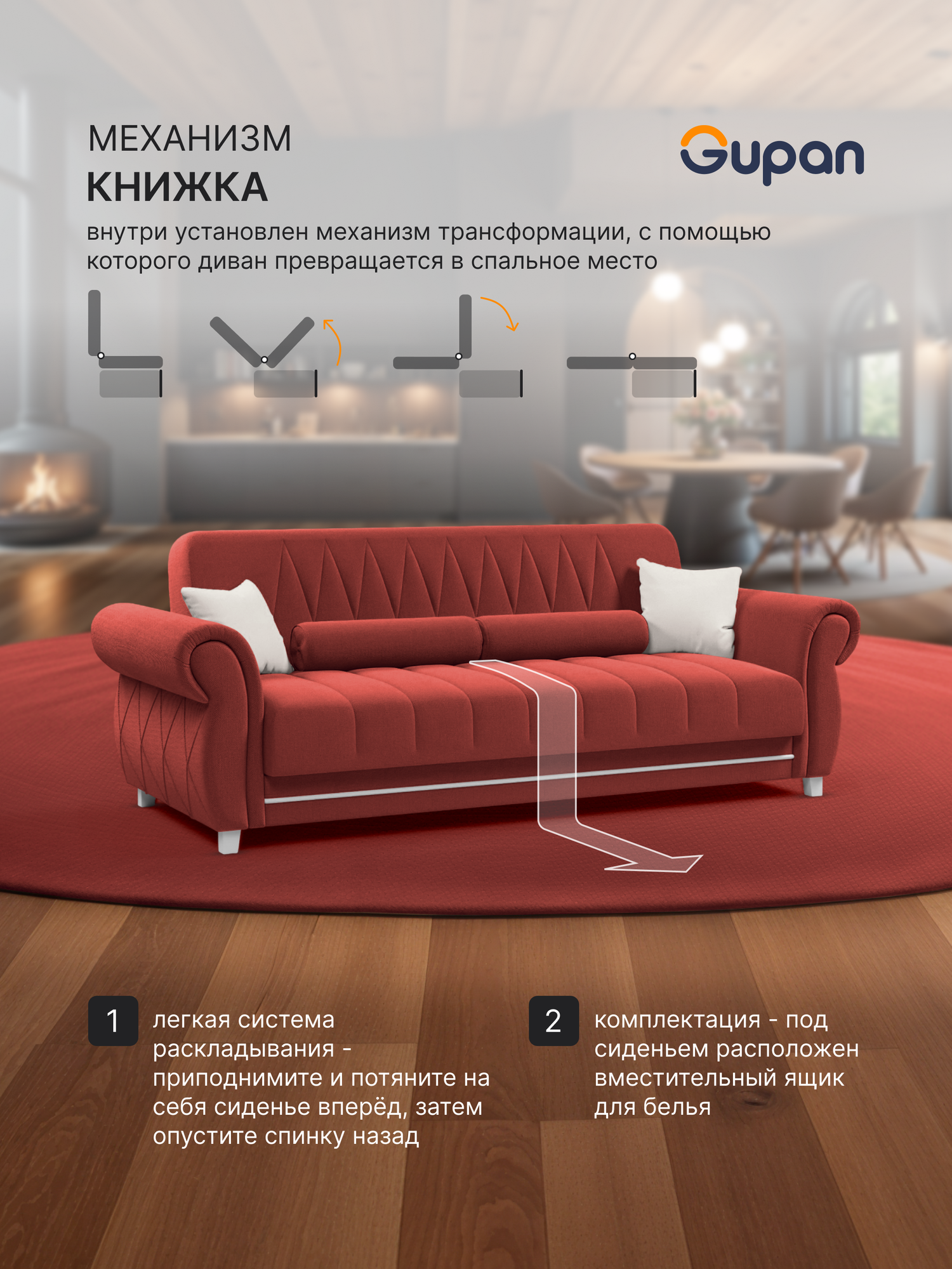 Диван кровать Gupan Роуз Велюр Amigo Berry, диван раскладной, механизм Книжка, беспружинный, диван прямой, с ящиком для белья, в гостиную, лофт
