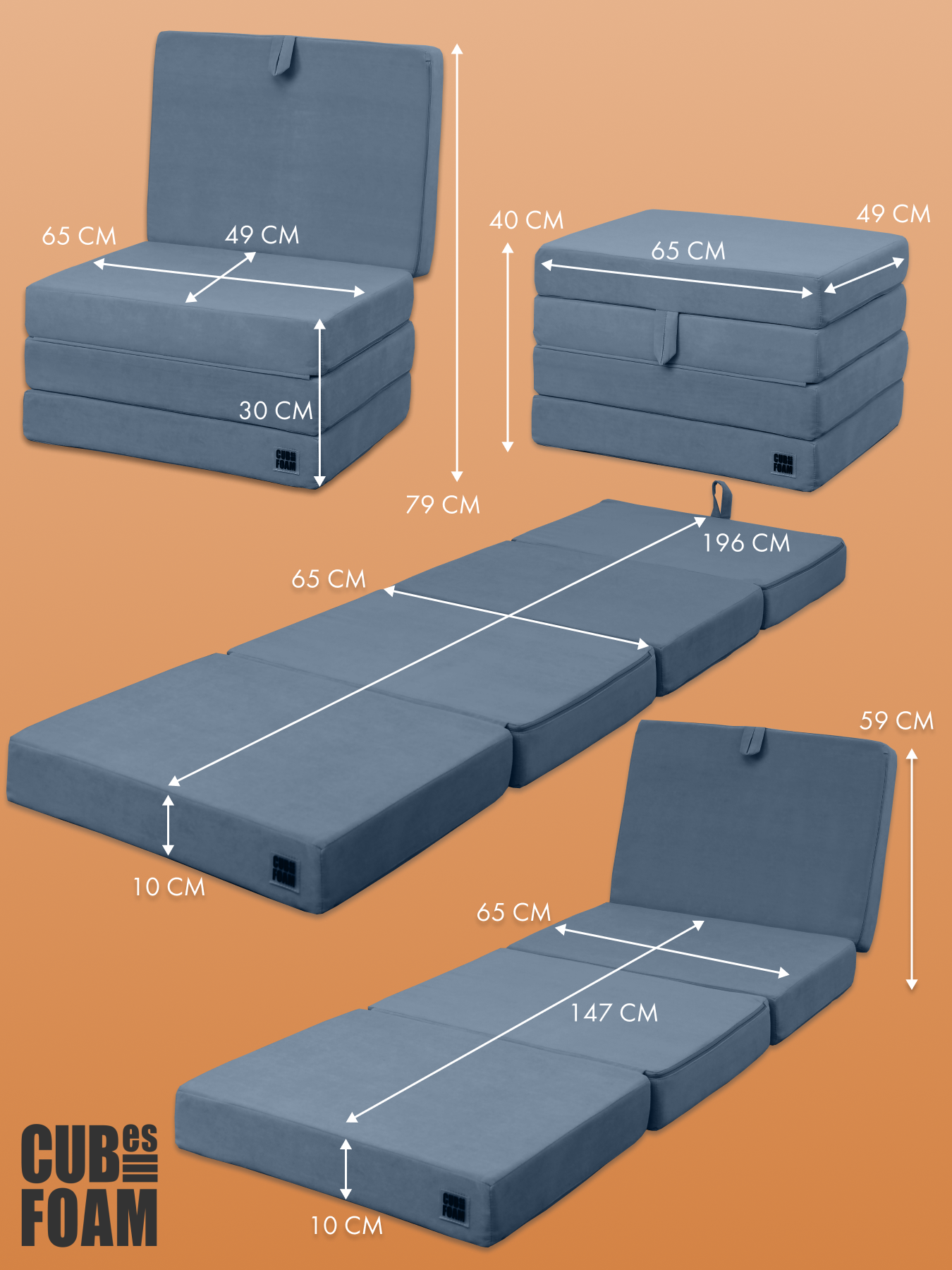 Кресло раскладное пуф матрас Cubes S (4 секции, синий)