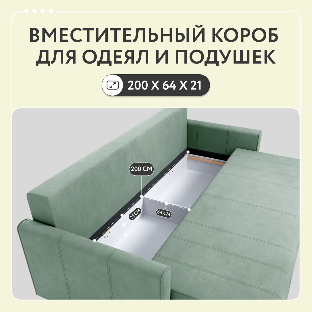 Диван-кровать раскладной прямой Римини, еврокнижка, велюр, мятный, 221х98х90