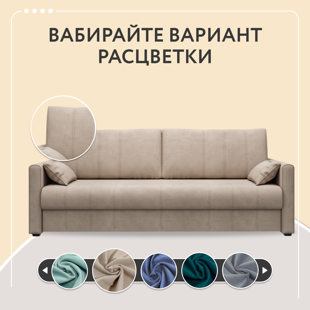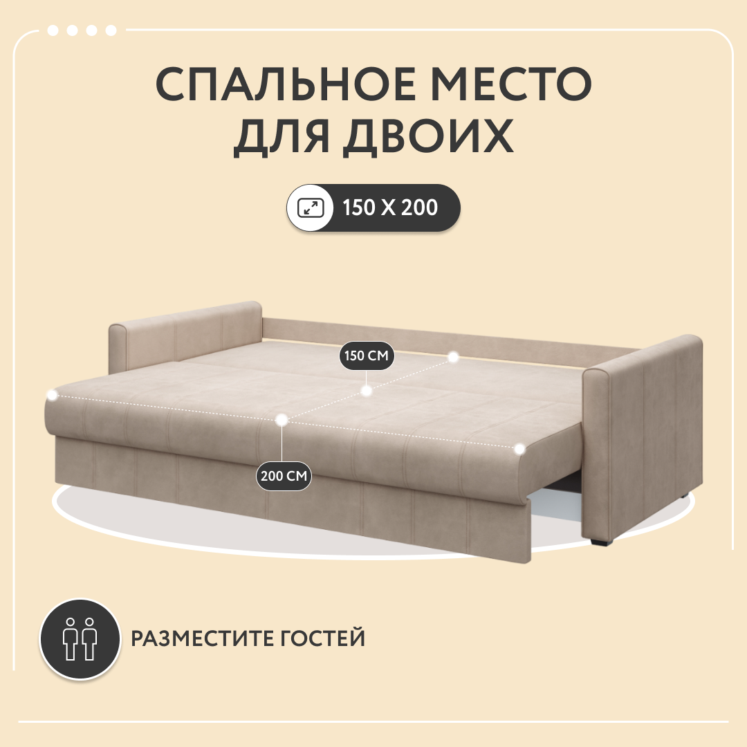 Диван-кровать раскладной прямой Римини, еврокнижка, велюр, бежевый, 221х98х90