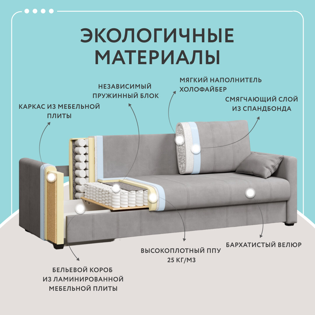 СохранитьДиван-кровать раскладной прямой Dee One Римини, еврокнижка, велюр, 221х98х90, серый интересное: